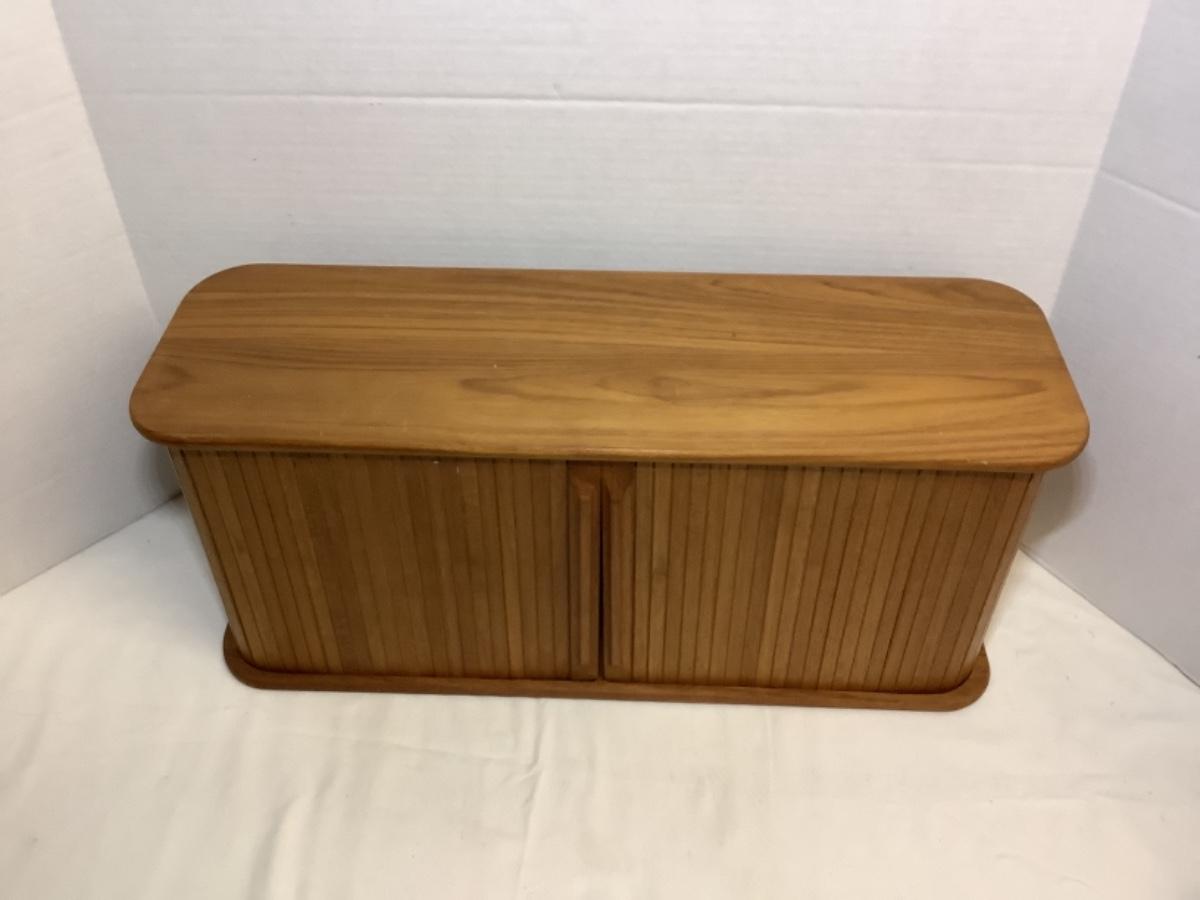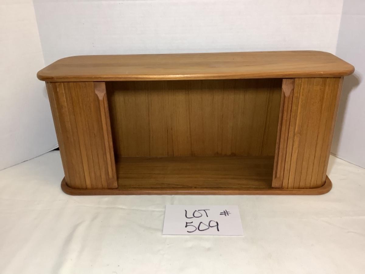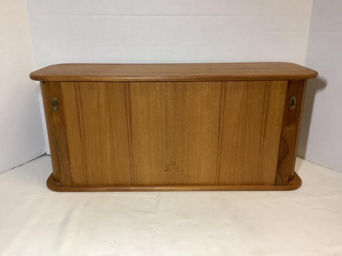 A - 509 Vintage Mid Century Teak Tambour Door Cabinet Wall Mount Desk Top