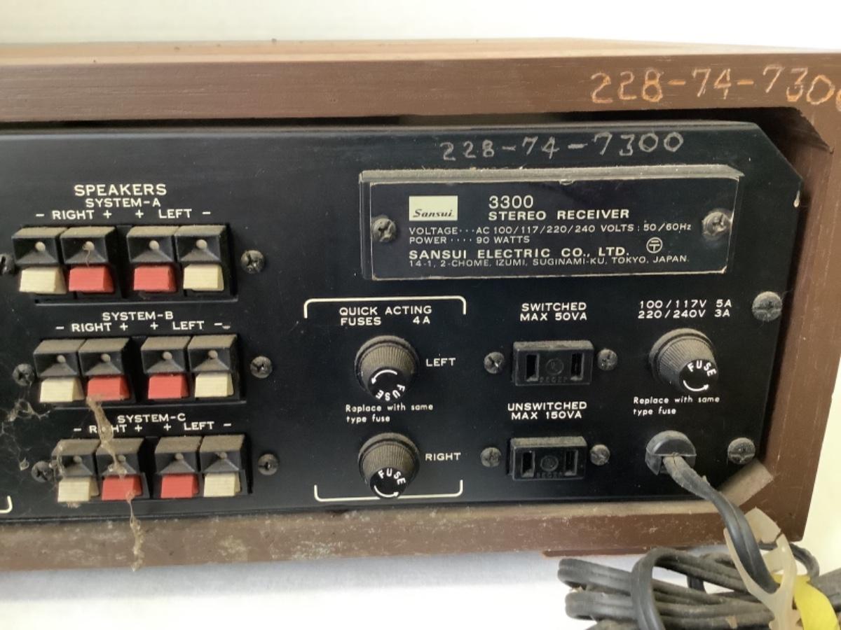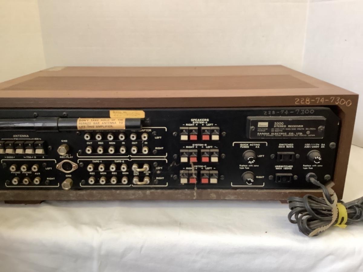 Vintage Sansui Stereo Receiver, Model # 3300. Receiver powers on and seems to be in good working order.