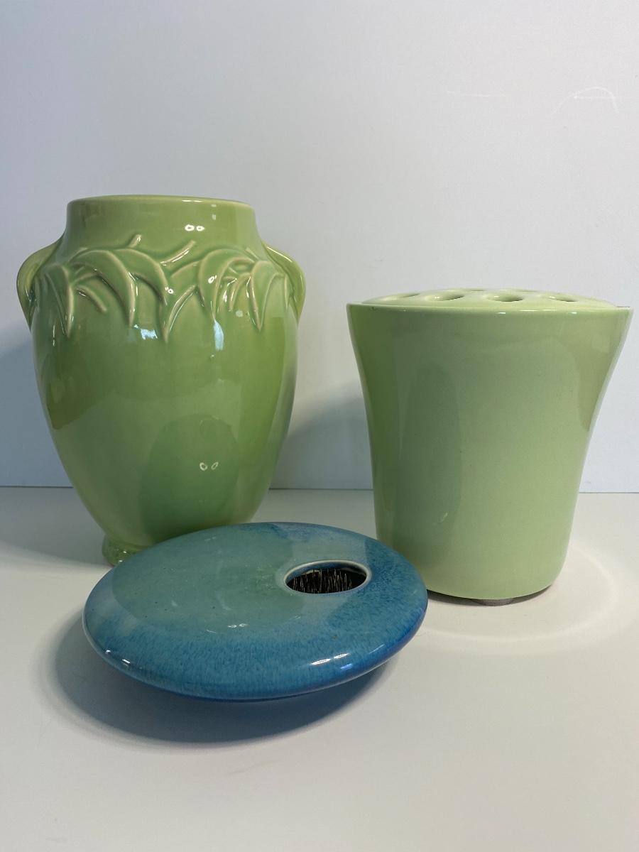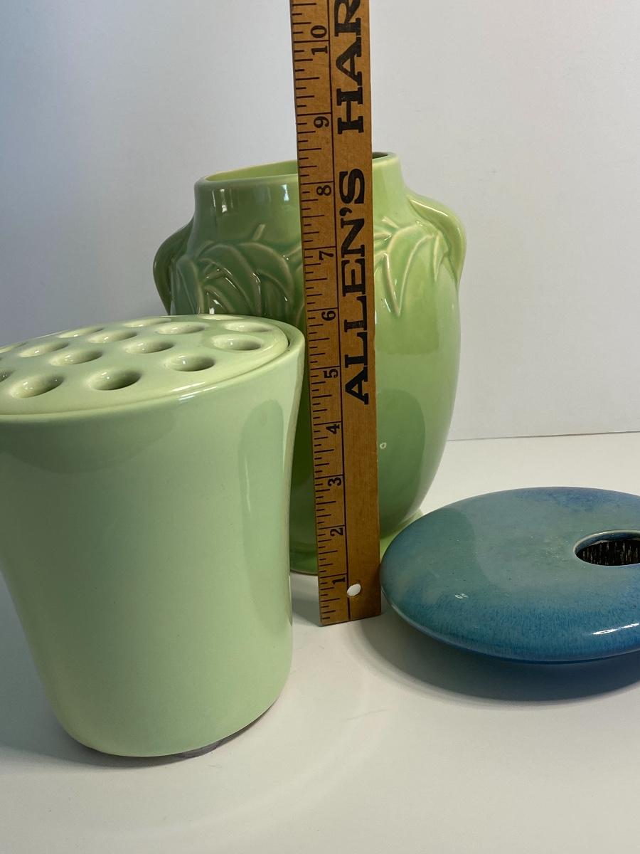 McCoy vase and other floral arrangement holders.