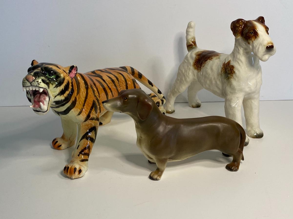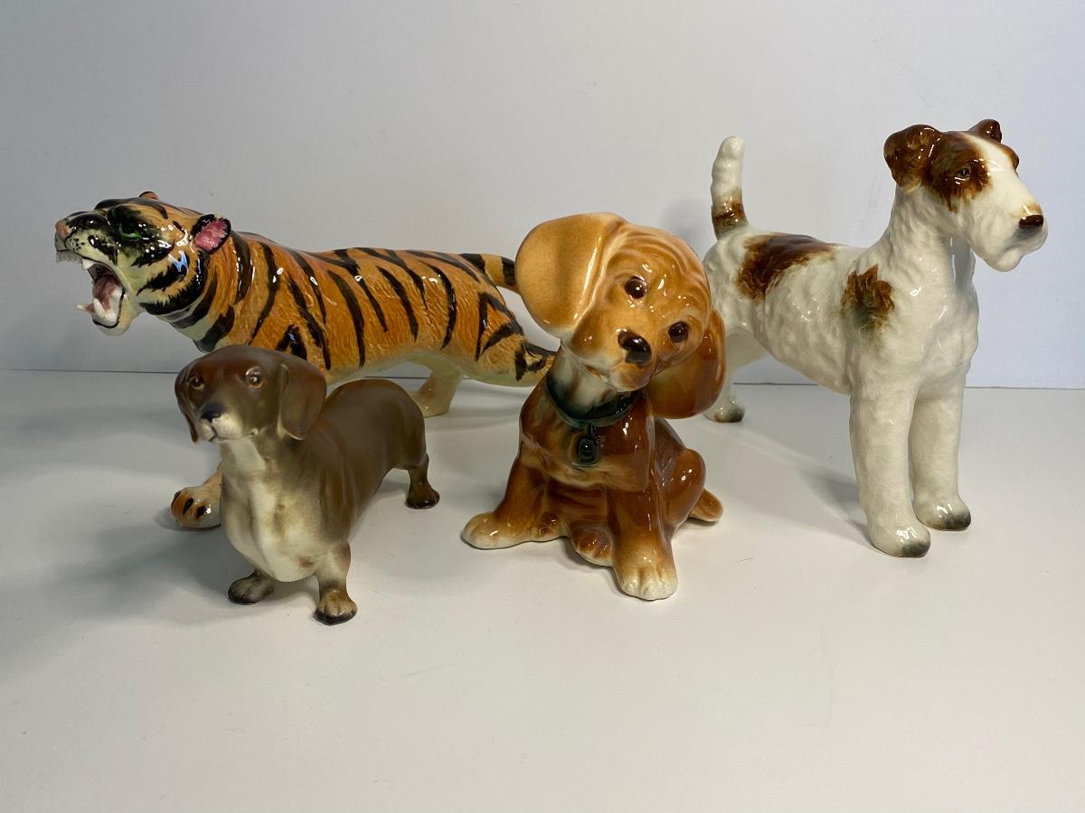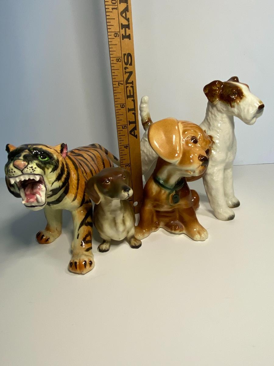Vintage figurines, the tiger has small chip on ear, but can be touched up with black glaze (polish) and would look new again! Please see all pictures for content of the lot, condition of the lot, and measurements if taken. Pictures are the best representation of the items listed and items are untested unless indicated in description. Thank you for looking and have fun bidding!