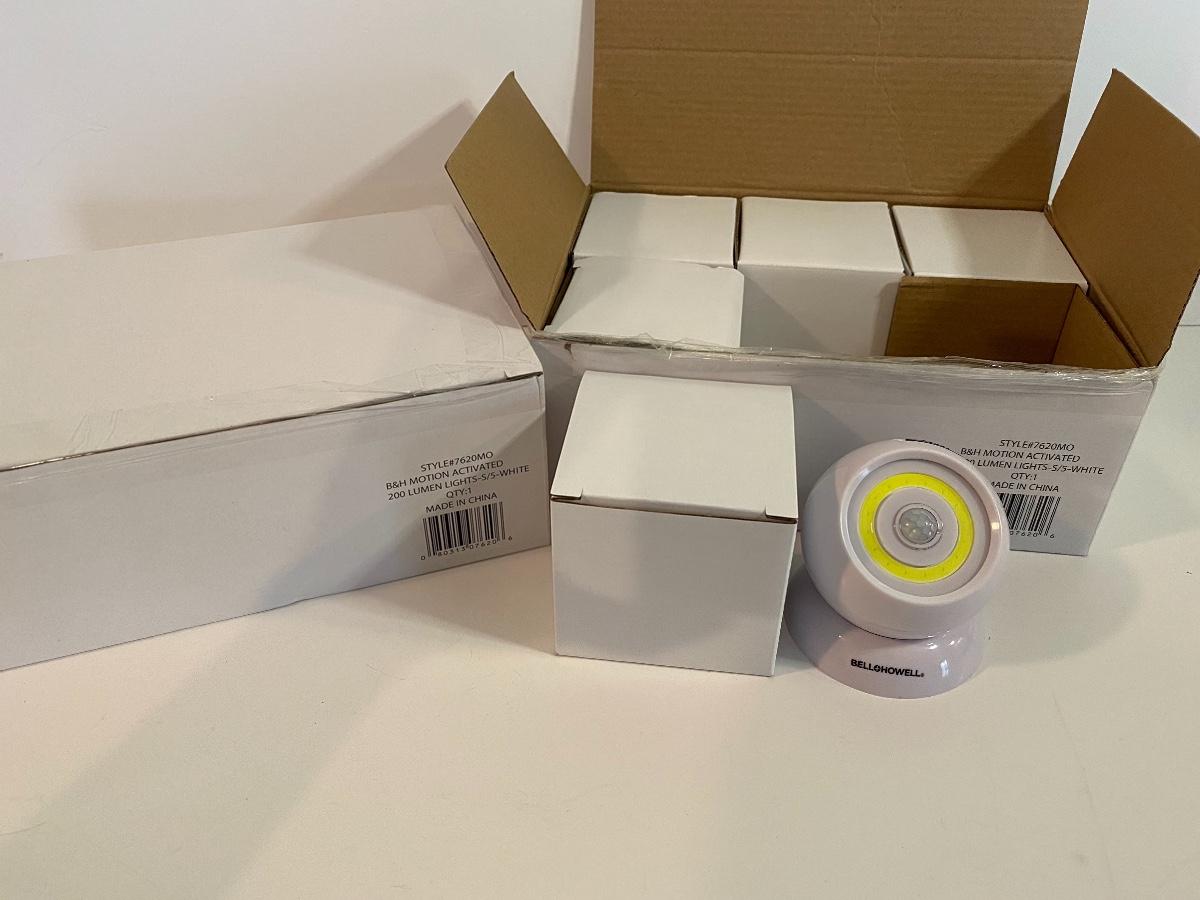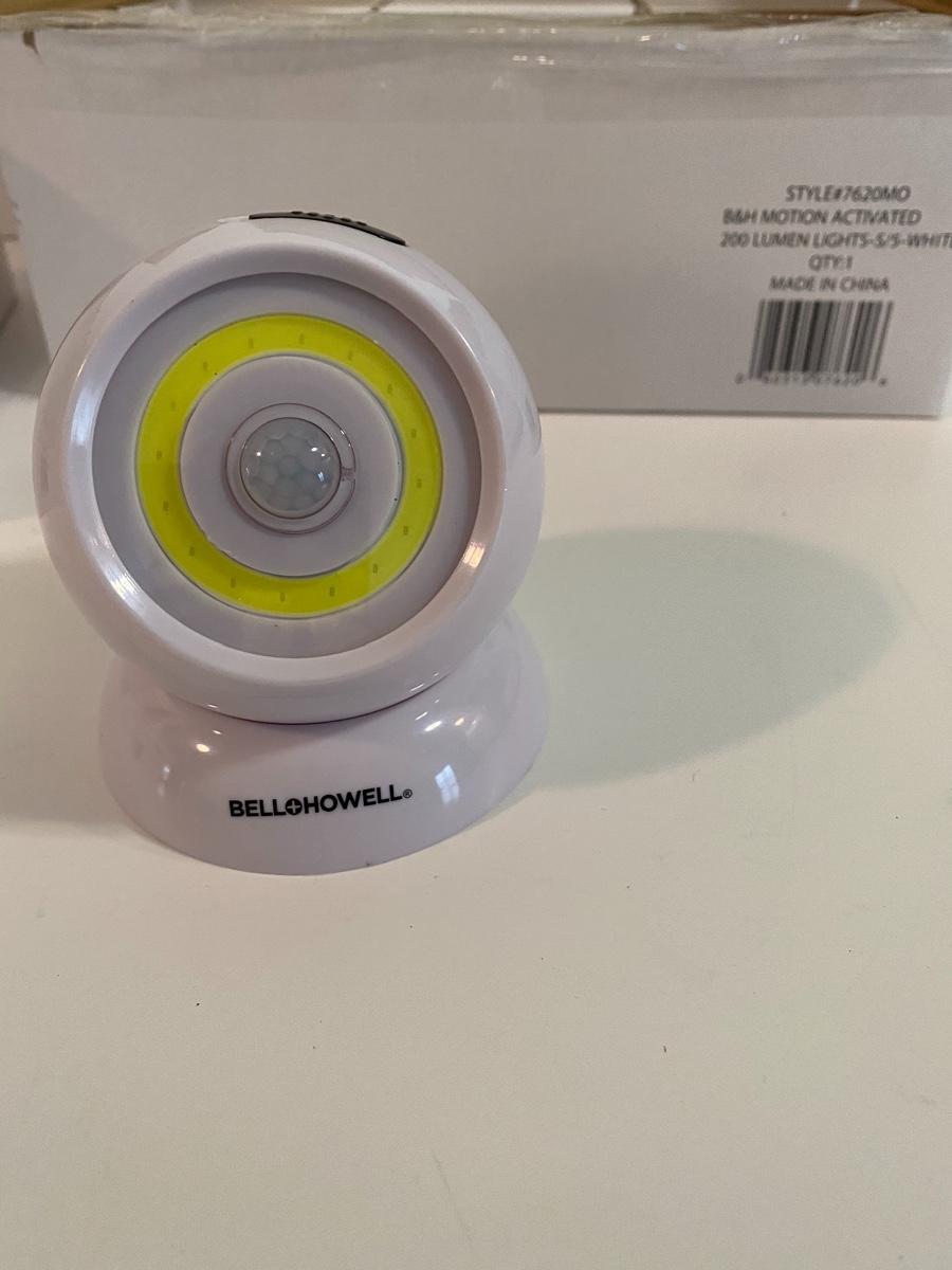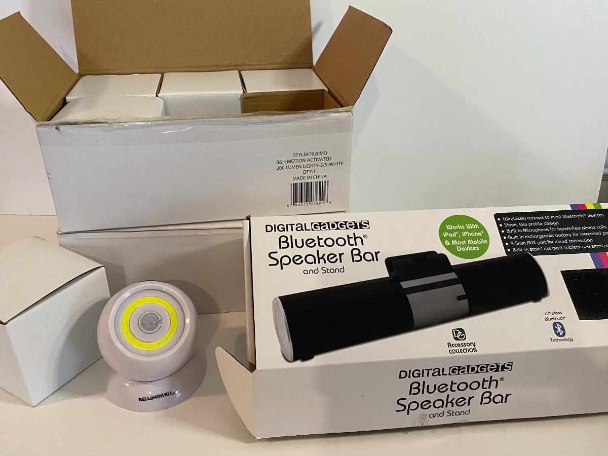 Bluetooth speaker bar and two boxes of motion activated lights.