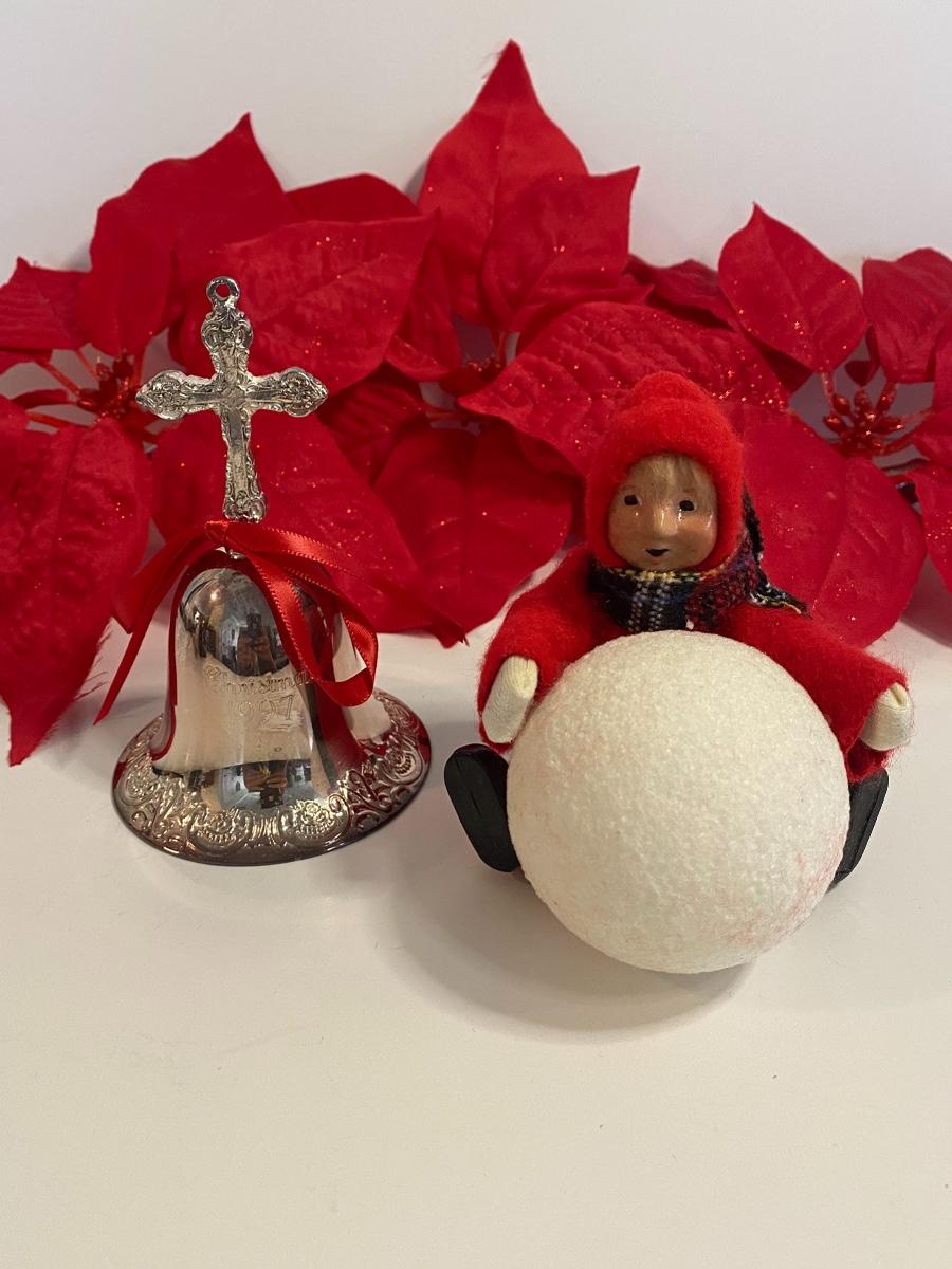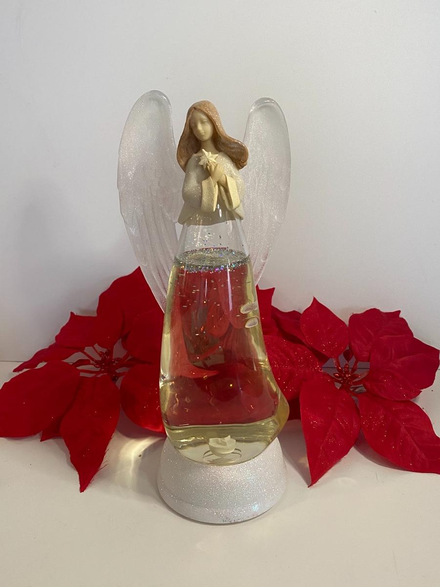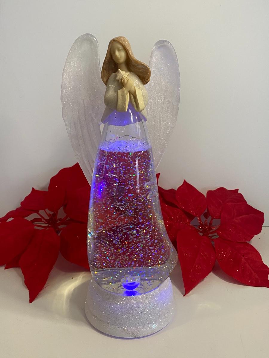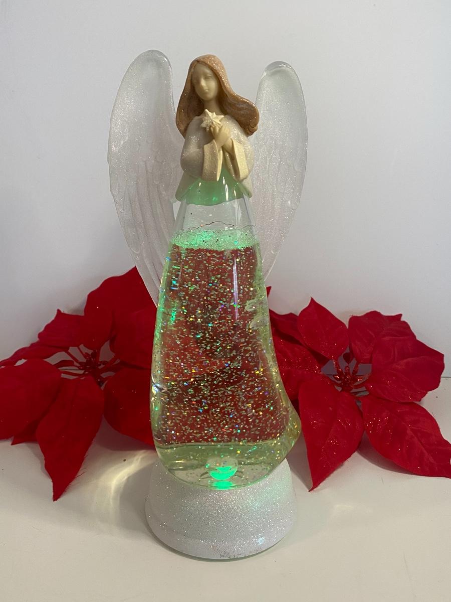 Angel lights up and changes colors. Clip poinsettias and ornaments. Small Breyer's Choice holding snowball and more.