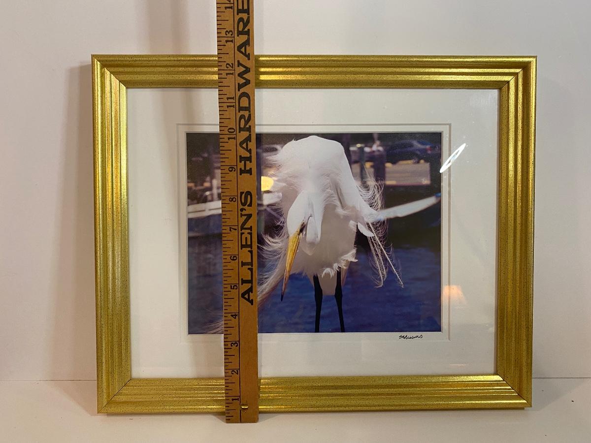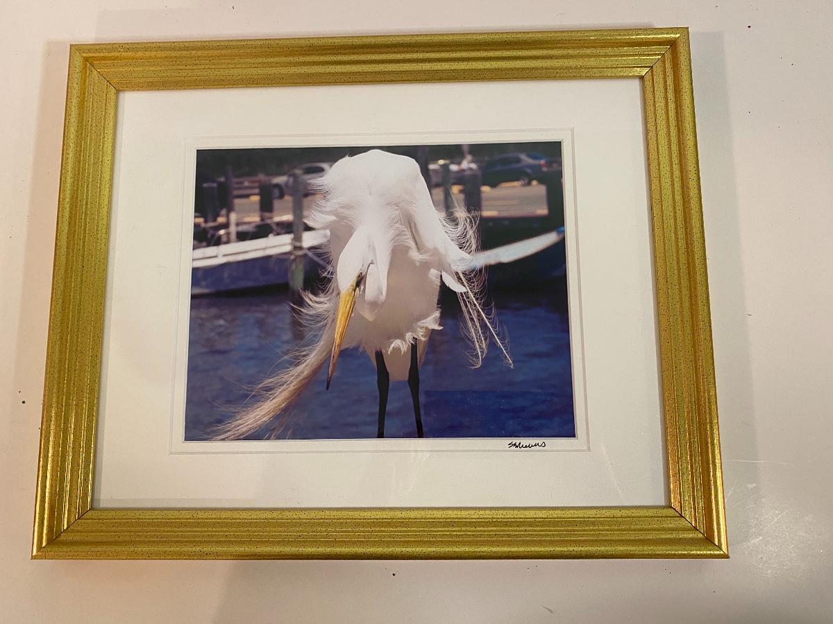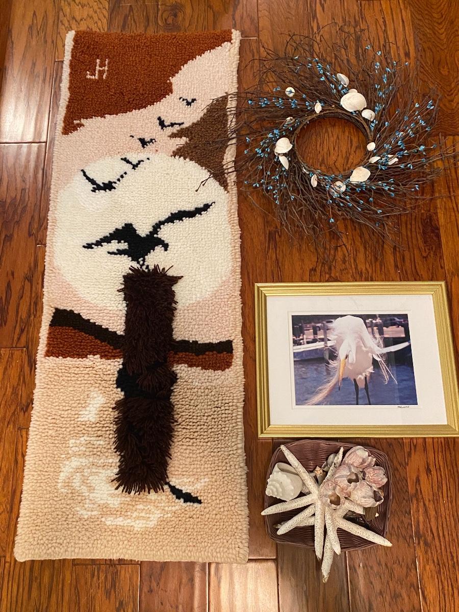 Lot 201: Egret Photo Artwork, Shell Wreath, and Beach Decor