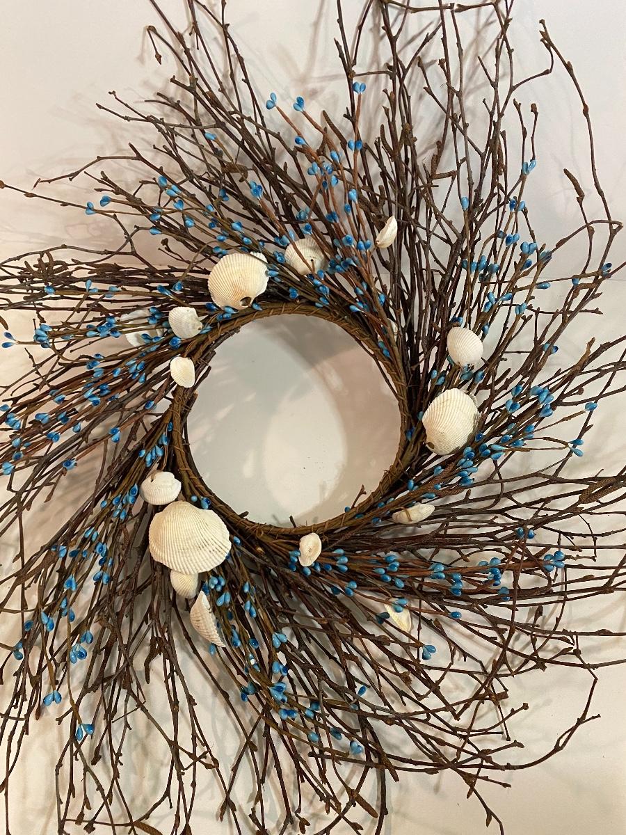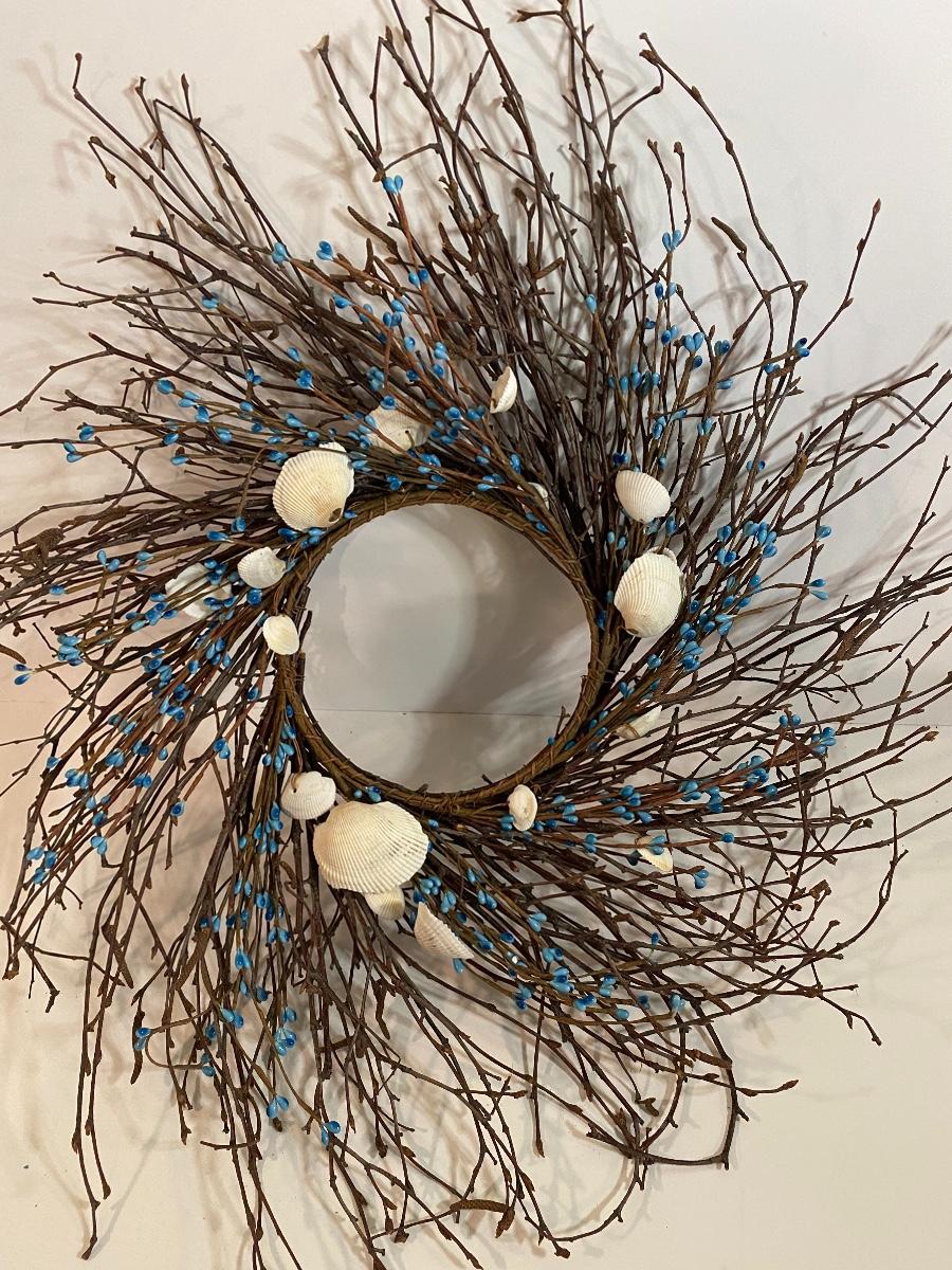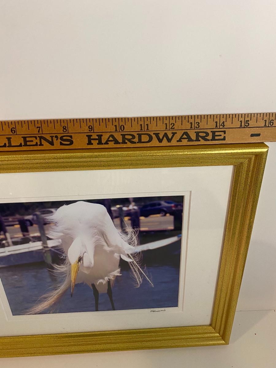 Lot 201: Egret Photo Artwork, Shell Wreath, and Beach Decor
