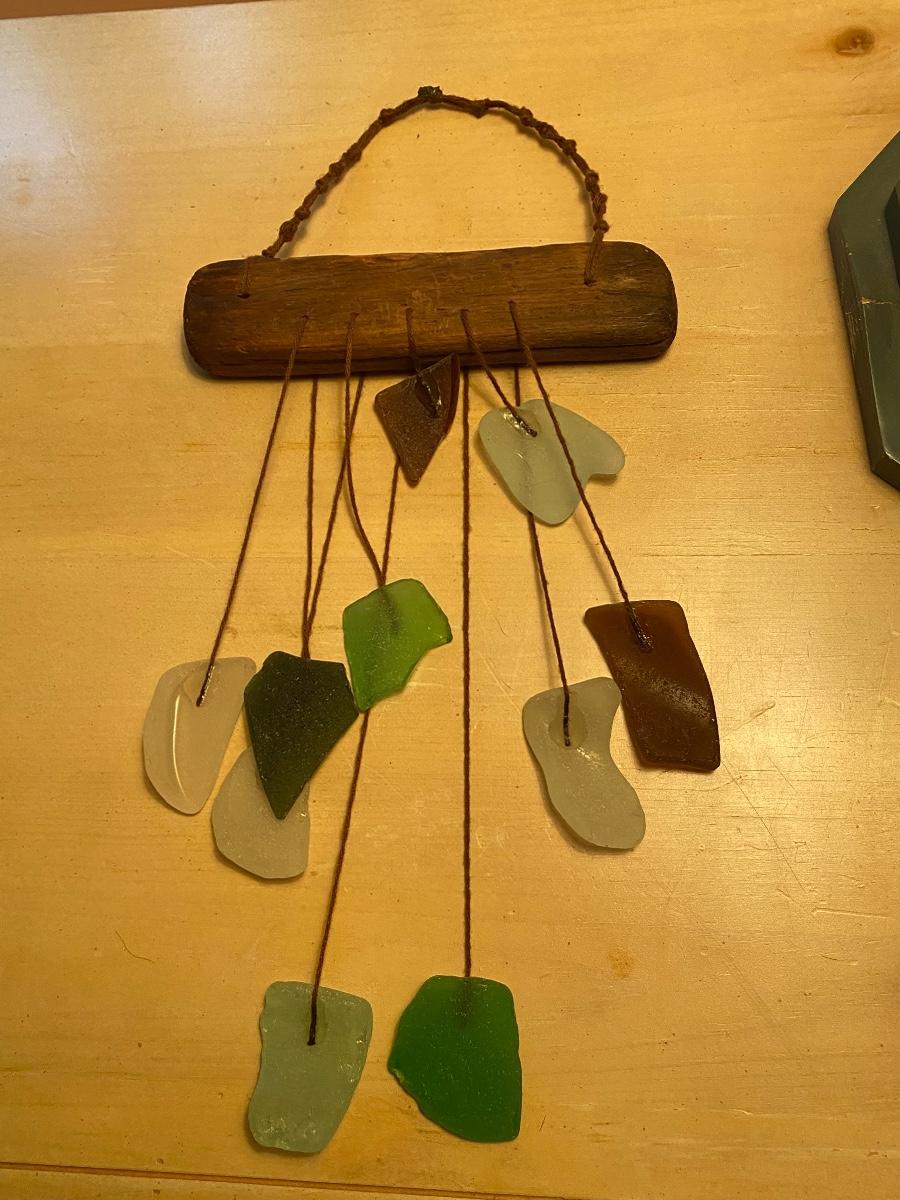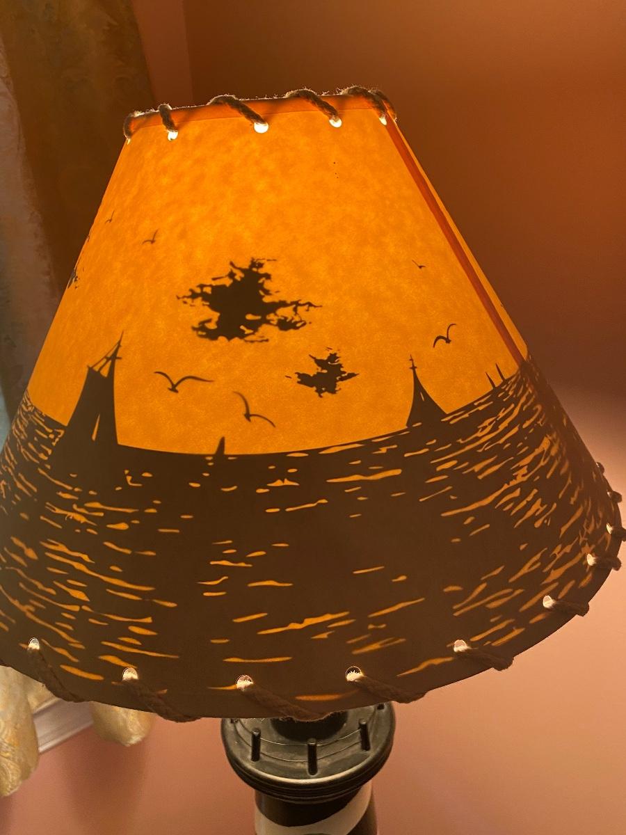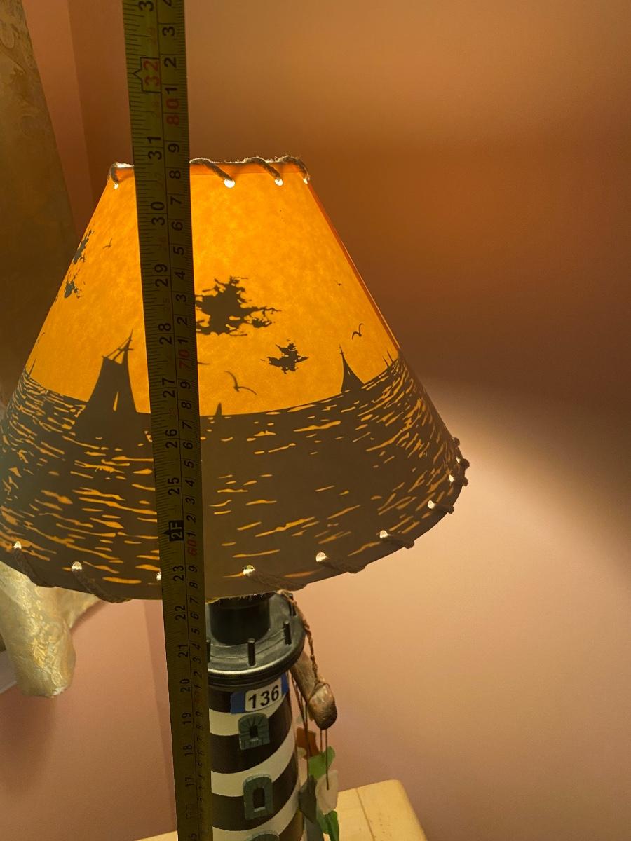 Very Cool Lighthouse Lamp and small sea-glass piece.