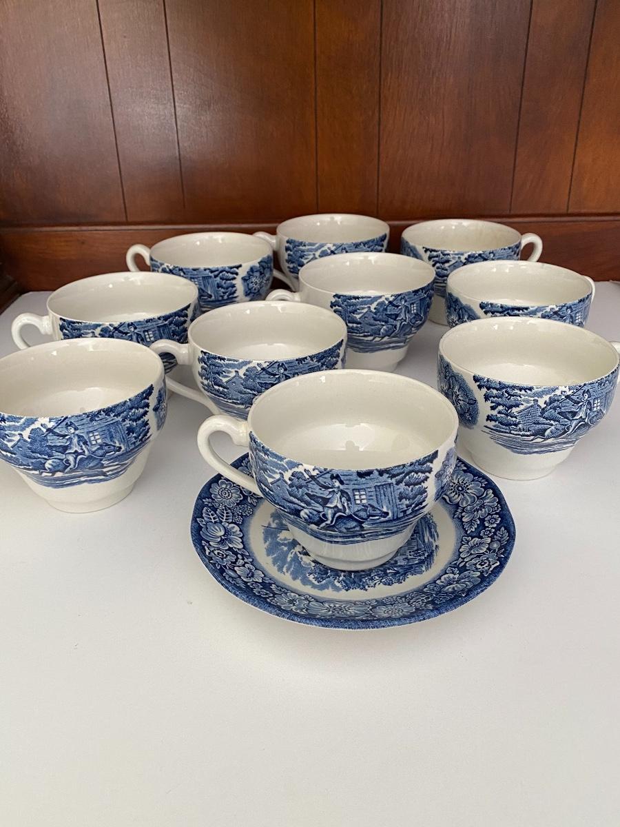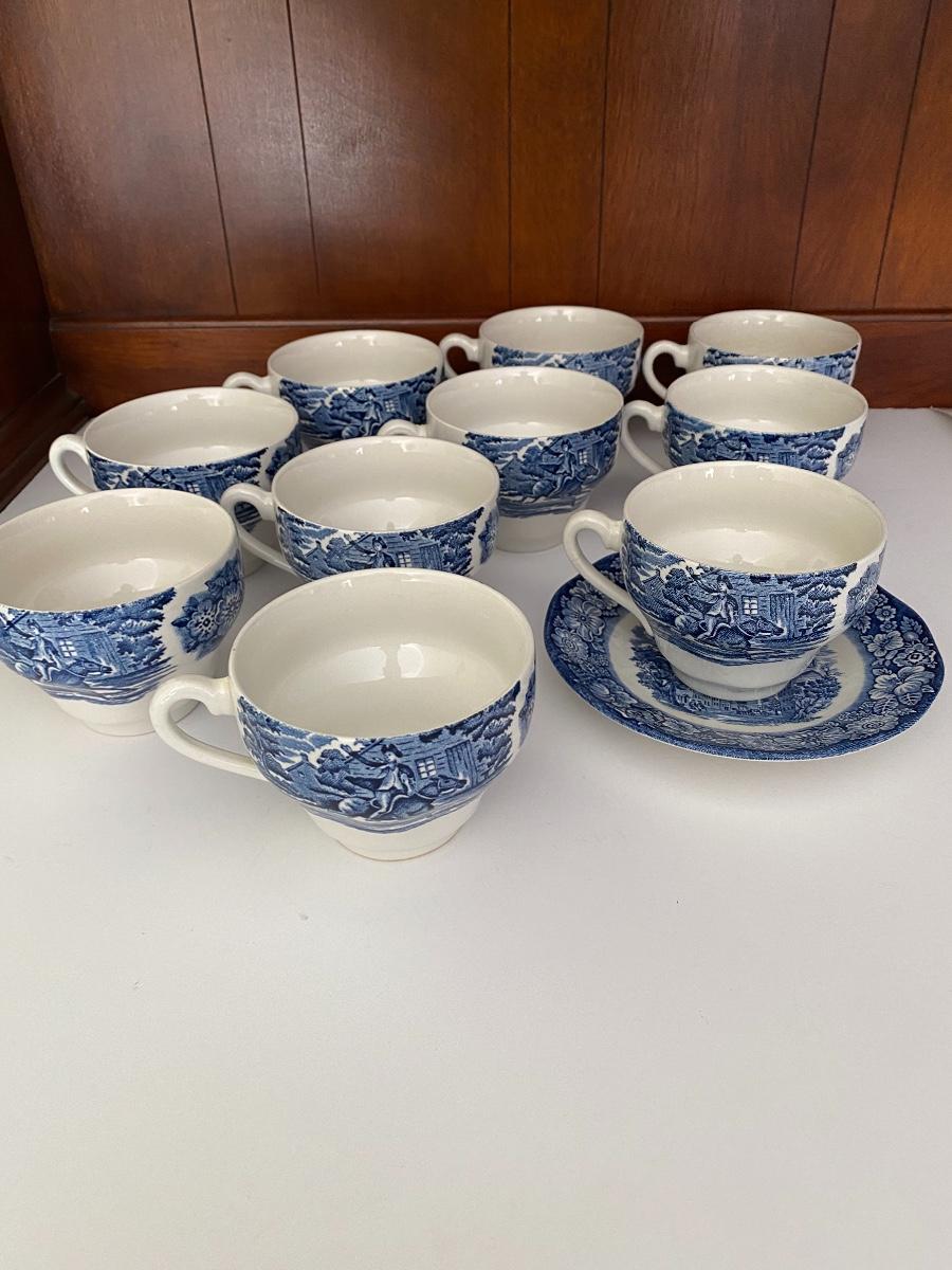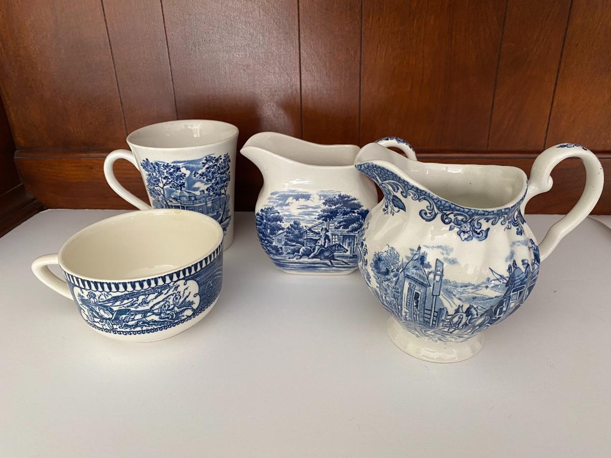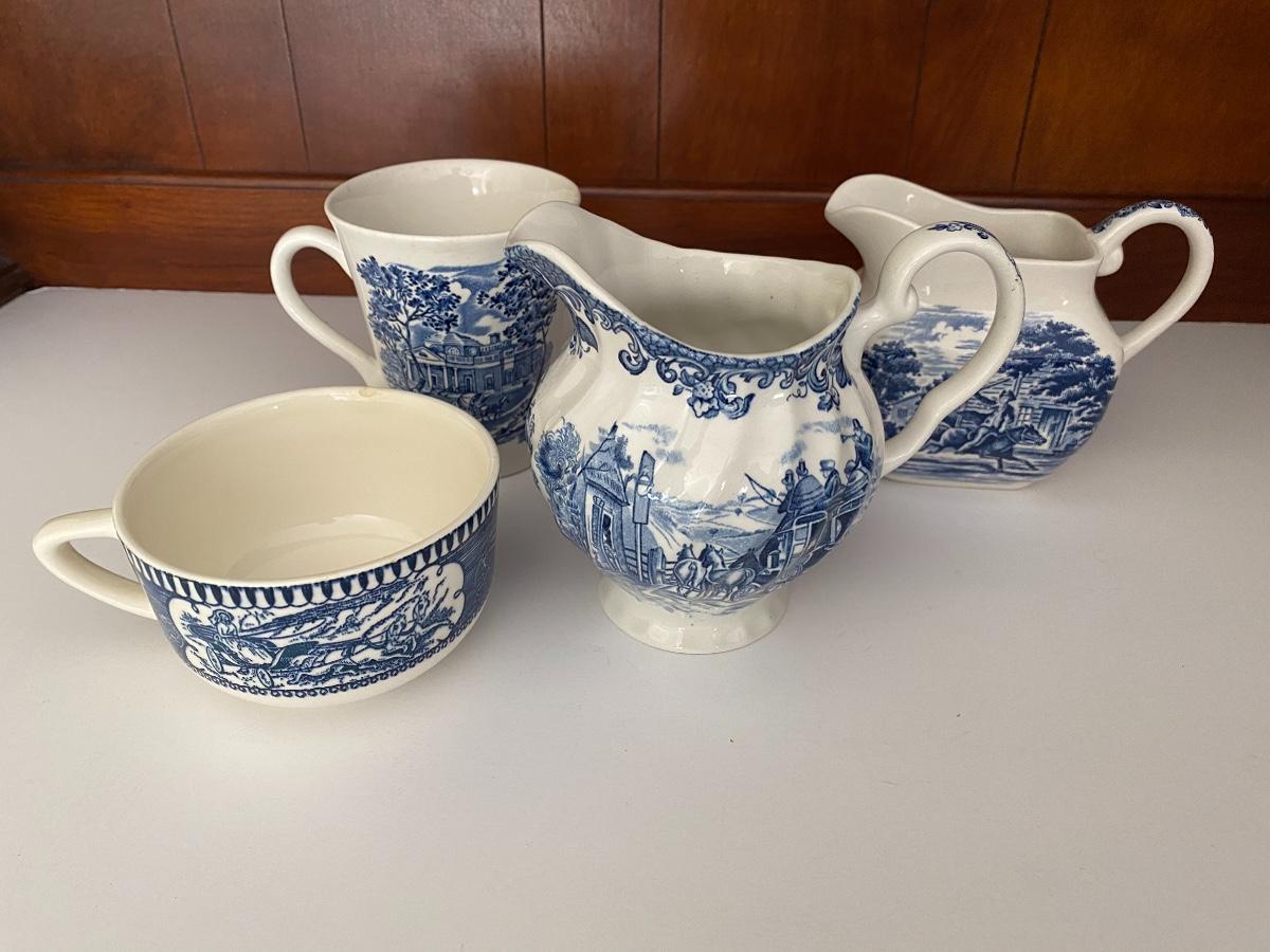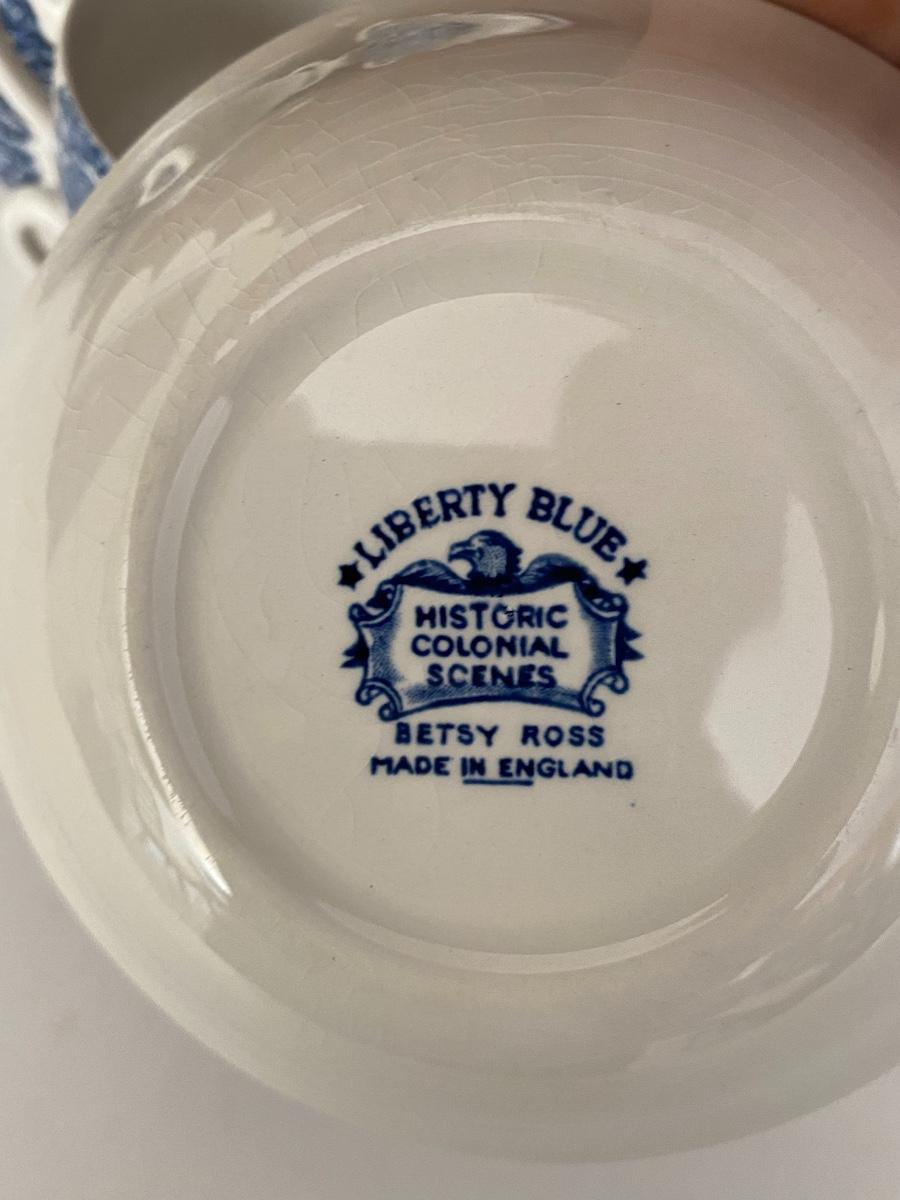 Liberty Blue Place settings including plates, bowls, saucers, teacups and more. Mixed lot.