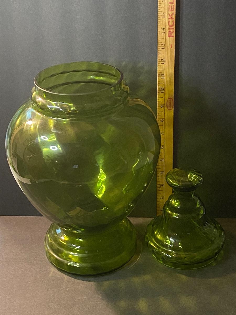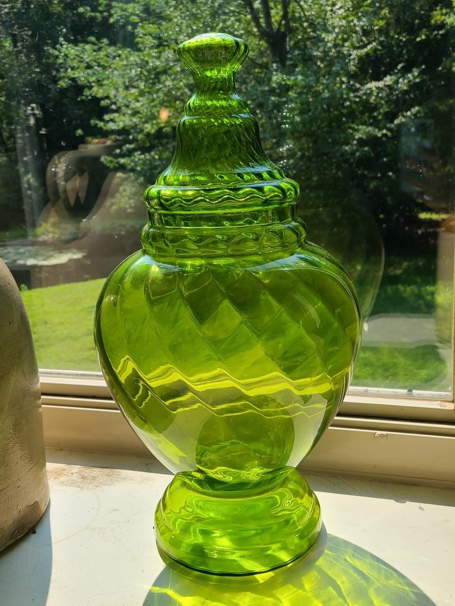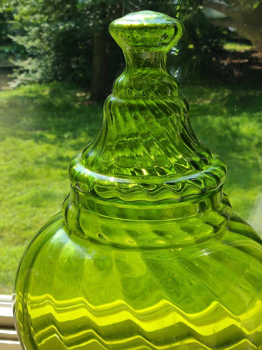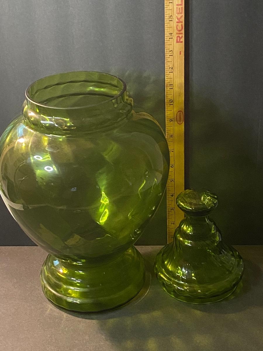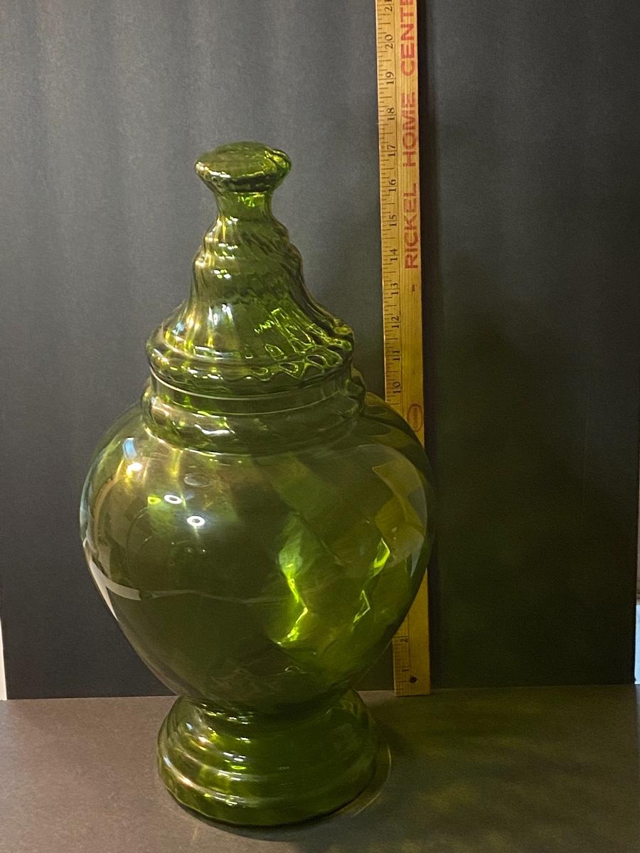 Lot 1: Huge MCM/Vintage Emerald Green Lidded Glass Candy/Jar