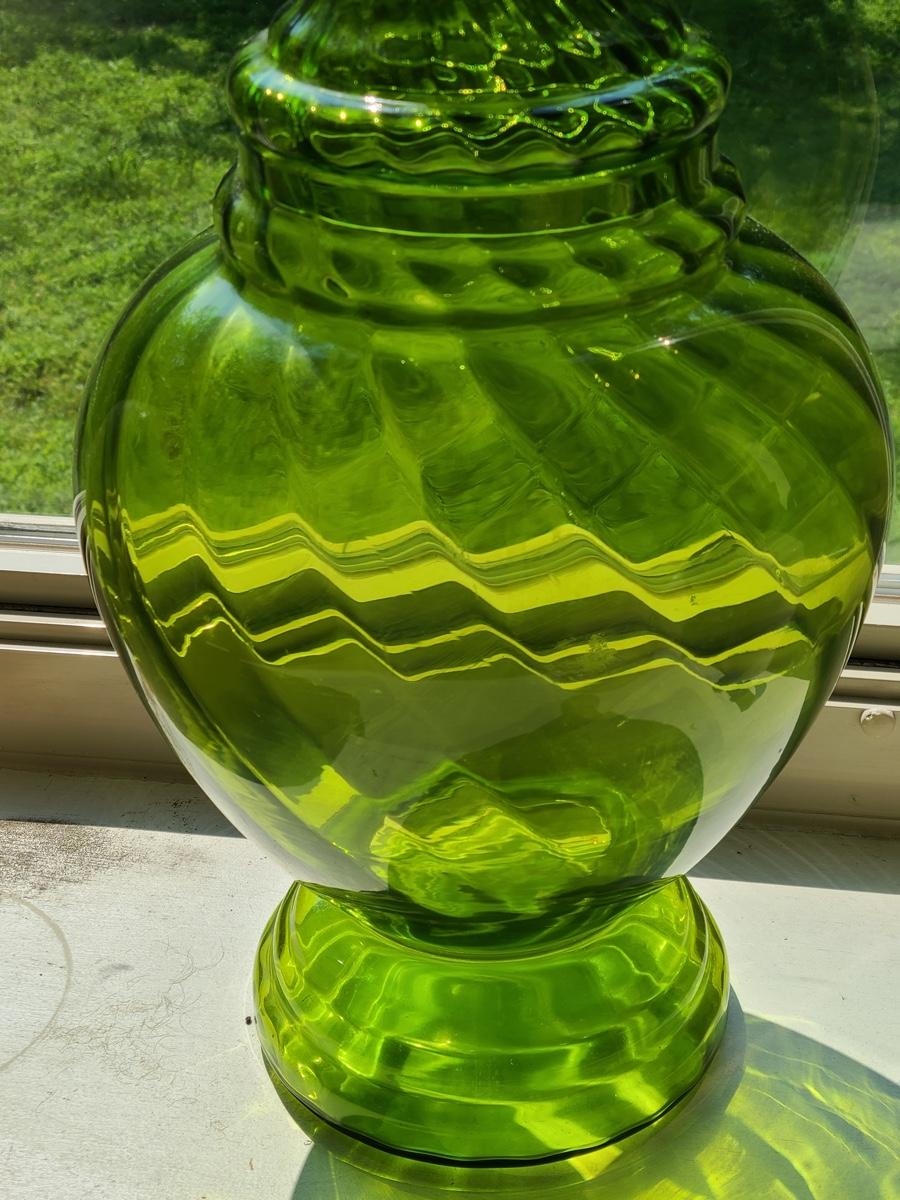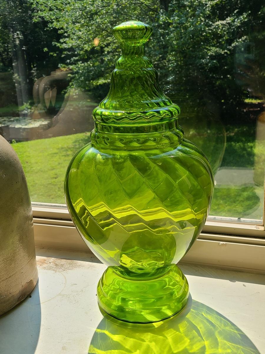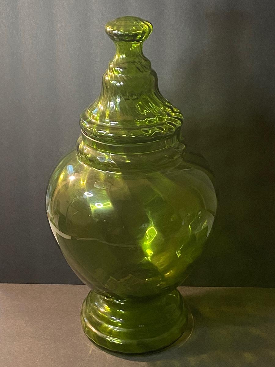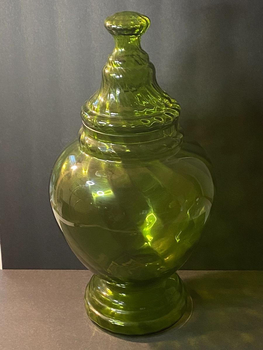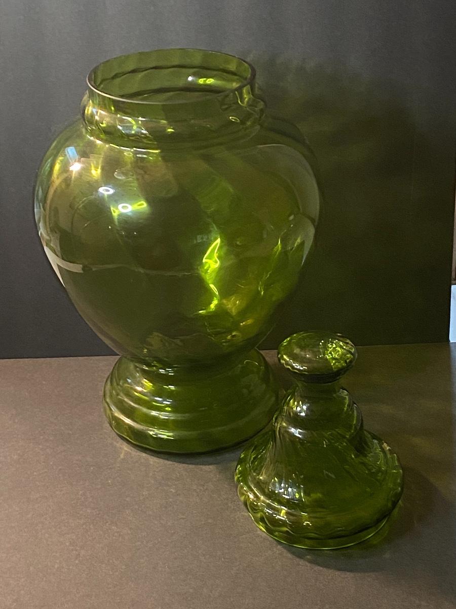 Lot 1: Huge MCM/Vintage Emerald Green Lidded Glass Candy/Jar