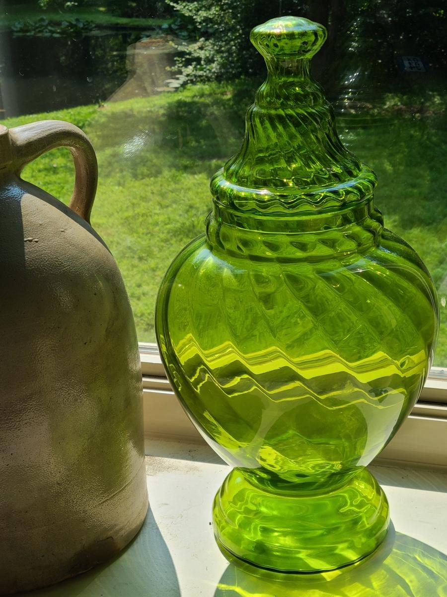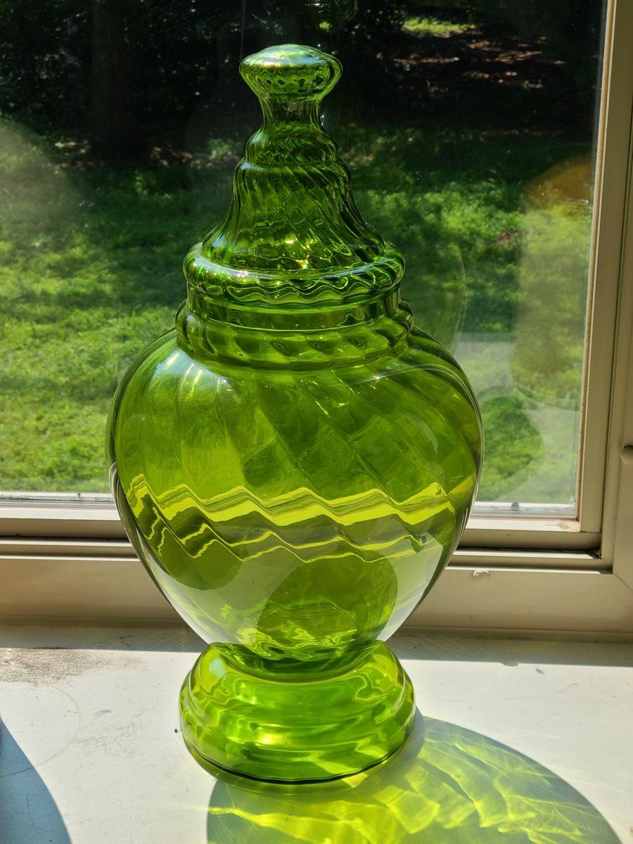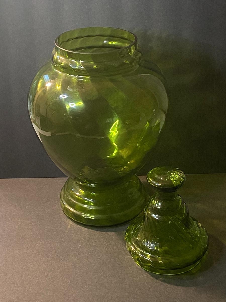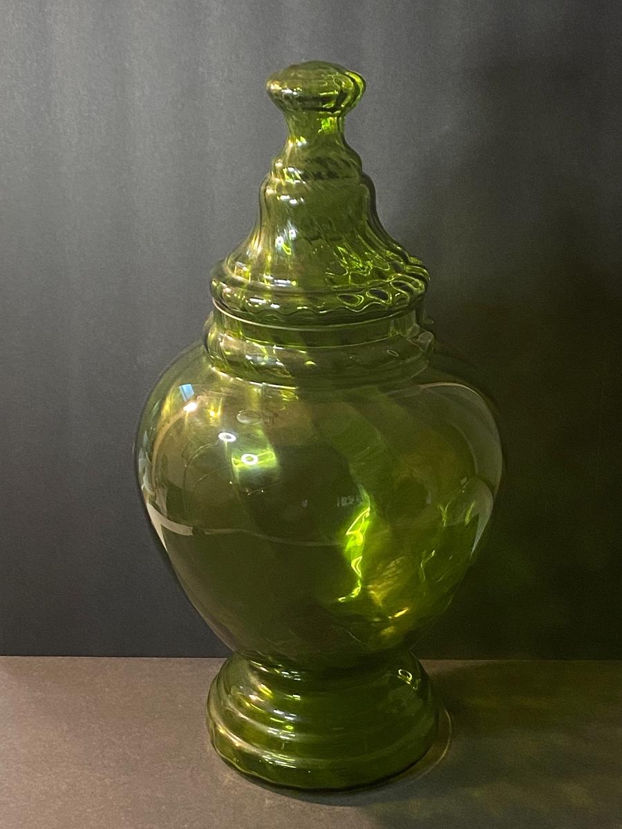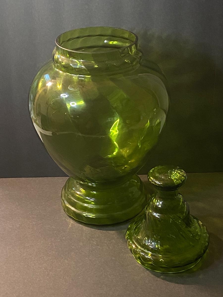 Lot 1: Huge MCM/Vintage Emerald Green Lidded Glass Candy/Jar
