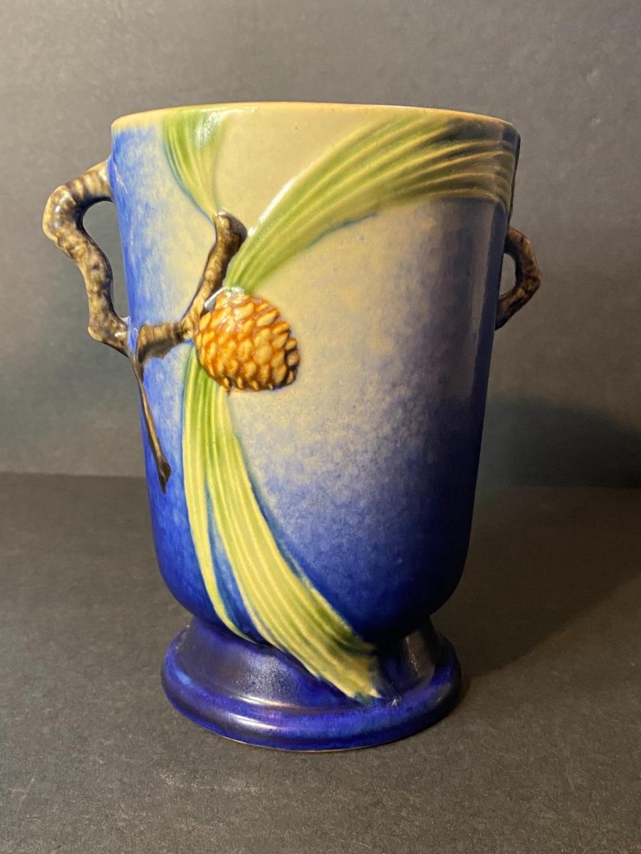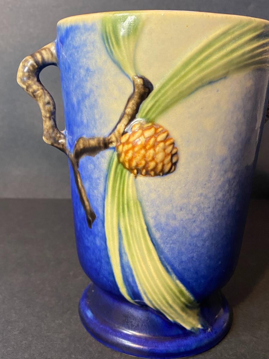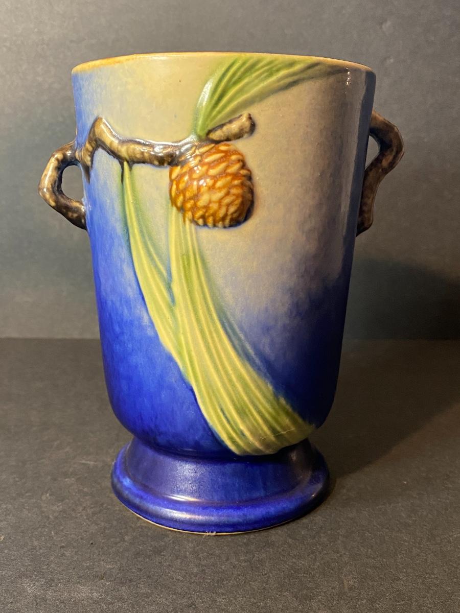 Lot 9: Unsigned Roseville Pottery Blue Pinecone Vase