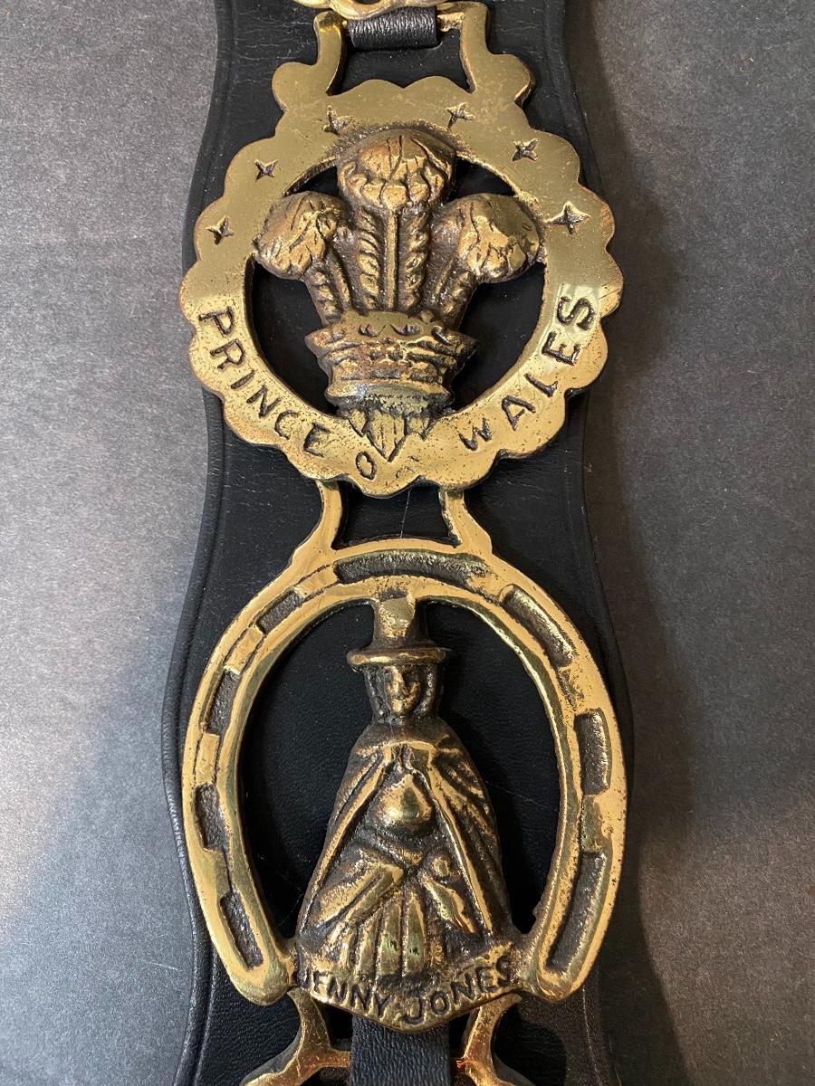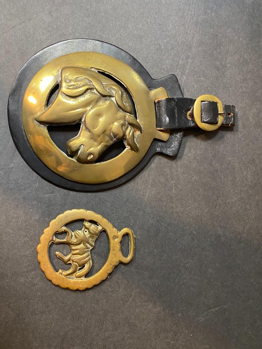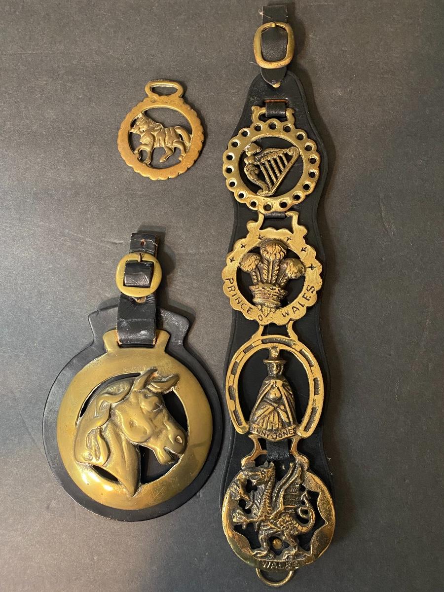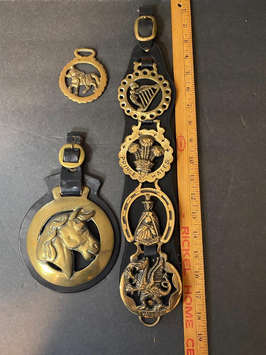 Lot 14: Antique English Horse Brass Medallions on Leather
