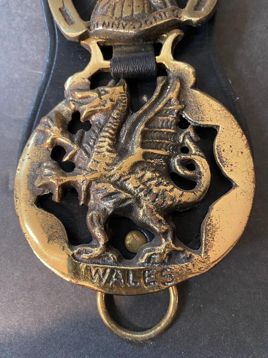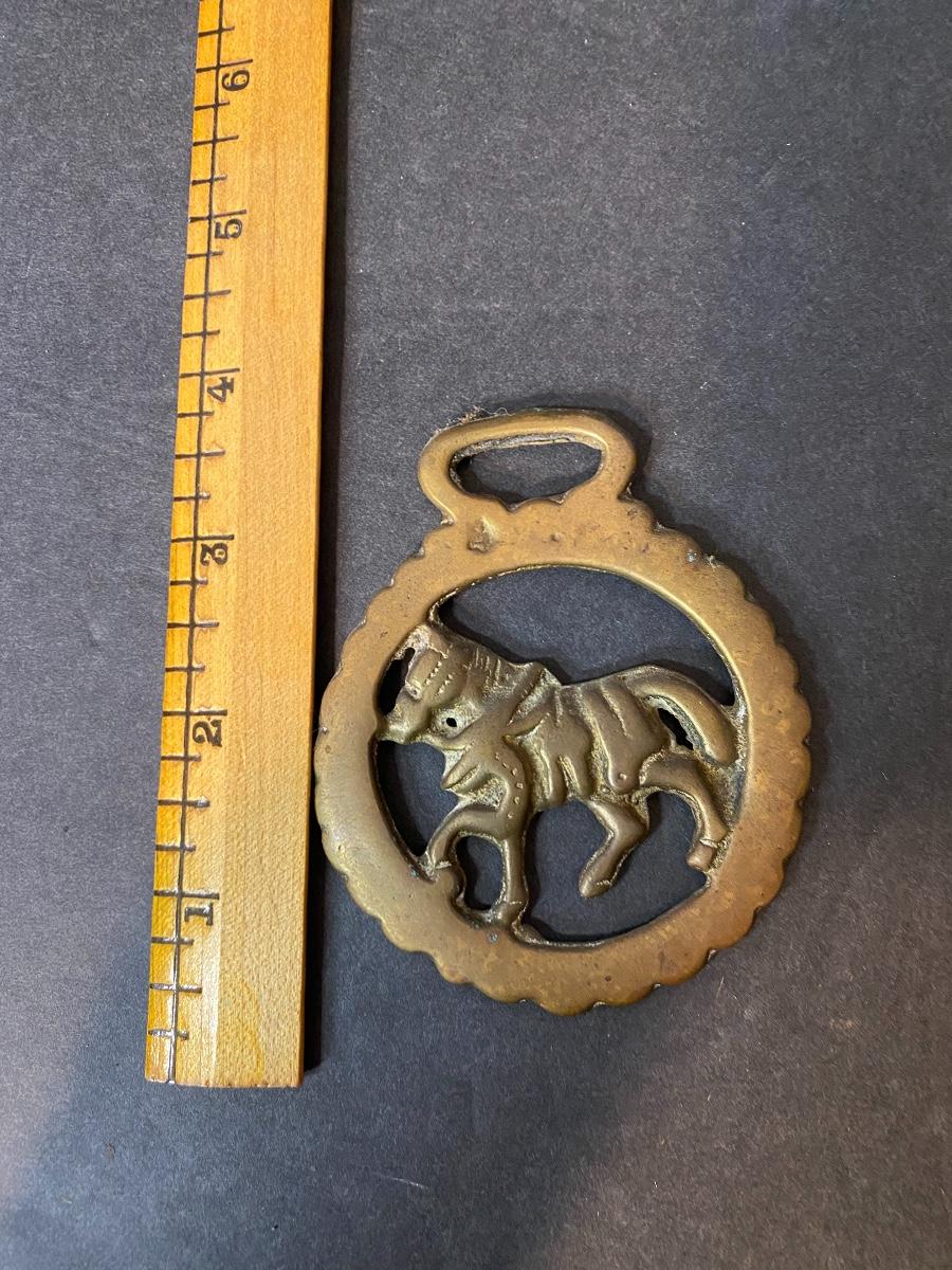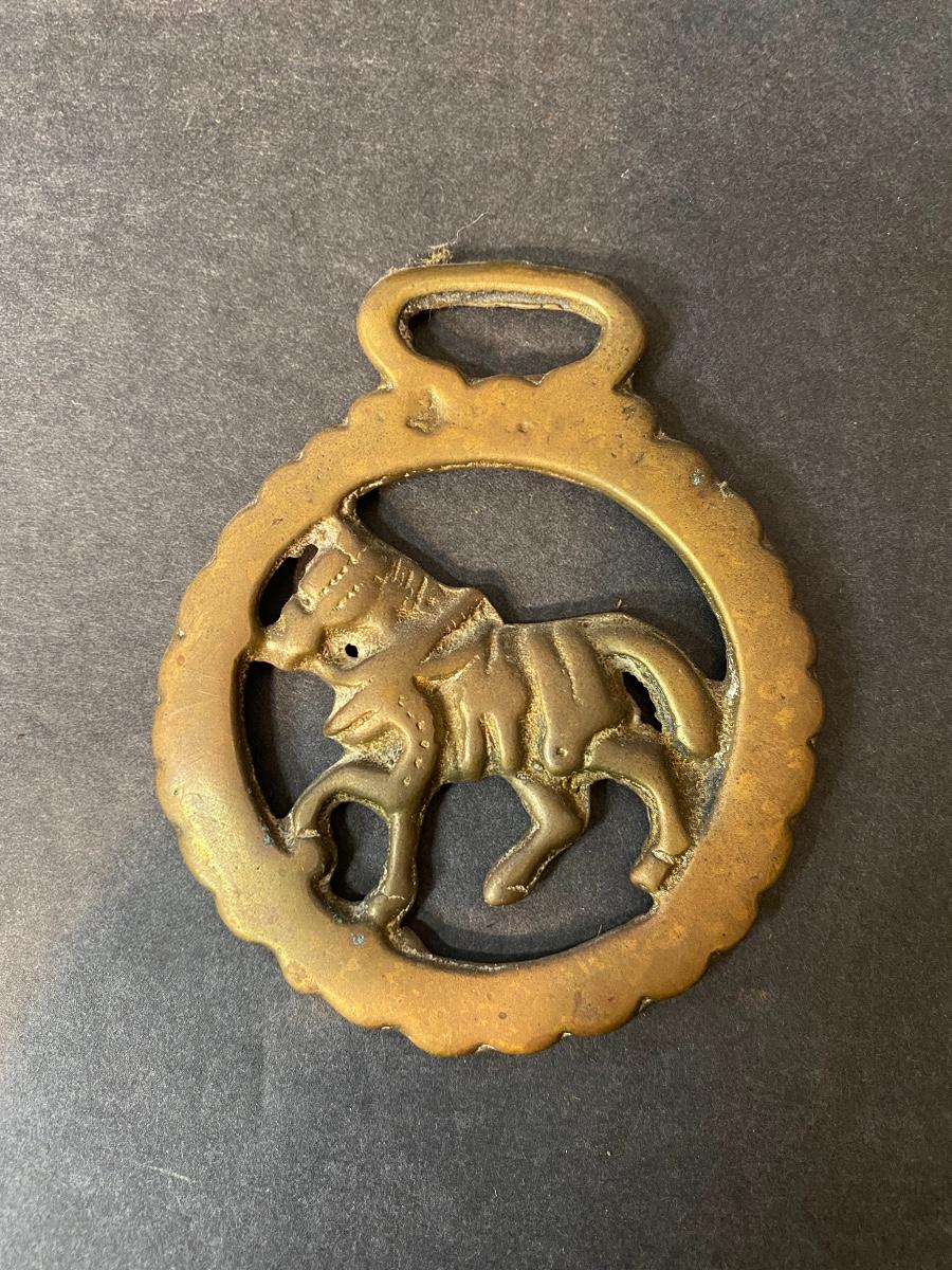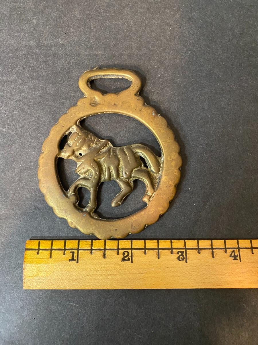 Lot 14: Antique English Horse Brass Medallions on Leather