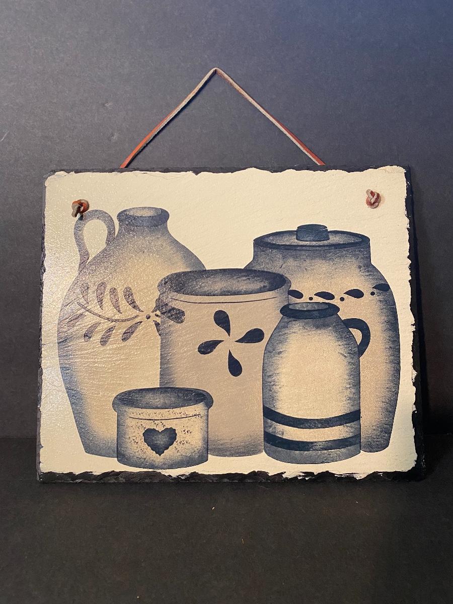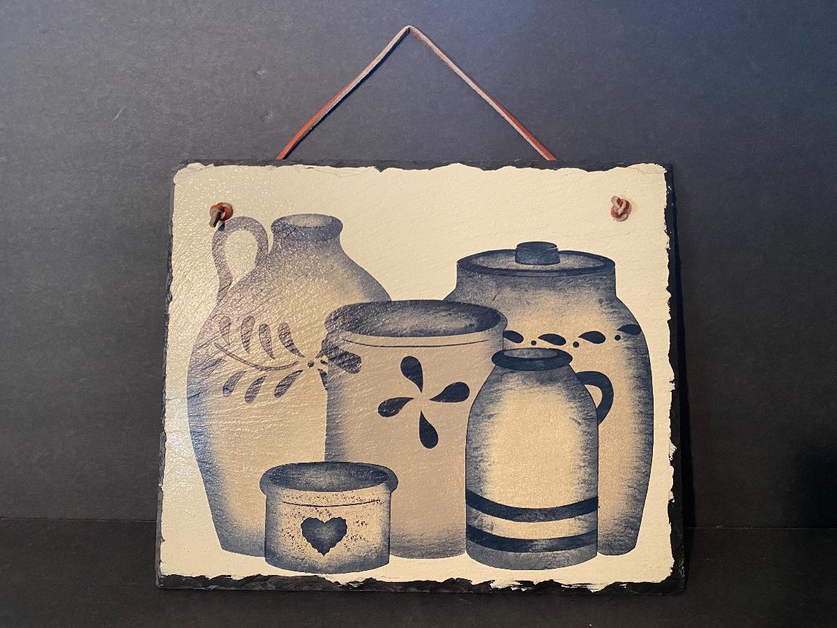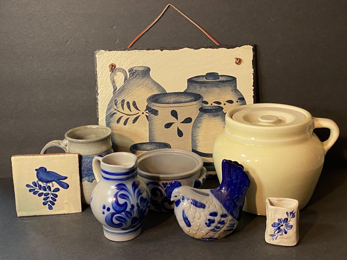 Lot 18: Salt Glaze Pottery/Figurines and Slate Art