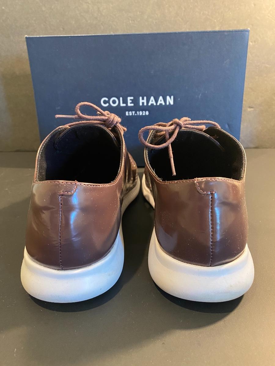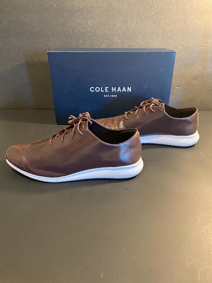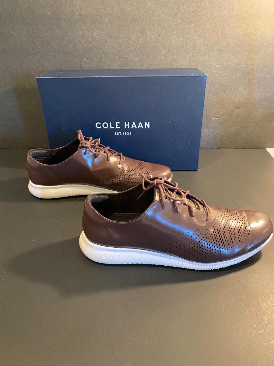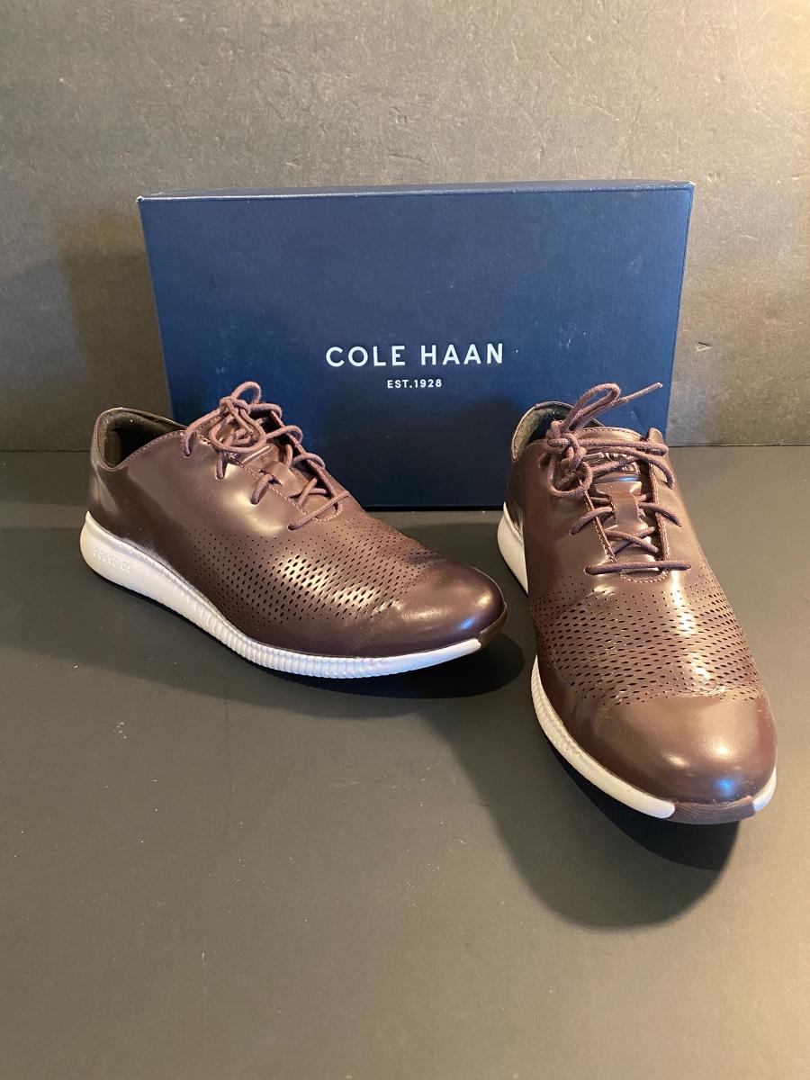 Two pair of Cole Haan shoes. Size 9. Pre-owned, gently worn. Brown clogs with heel. Brown casual leather sneakers.
