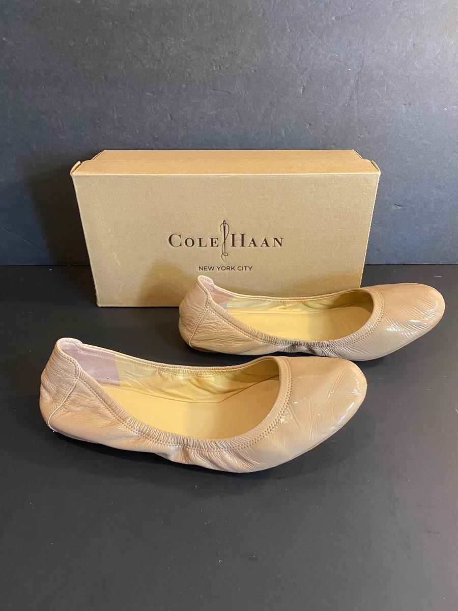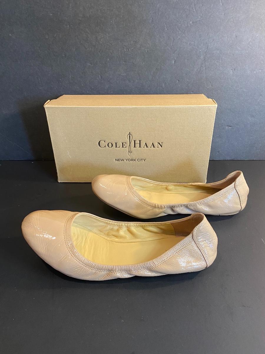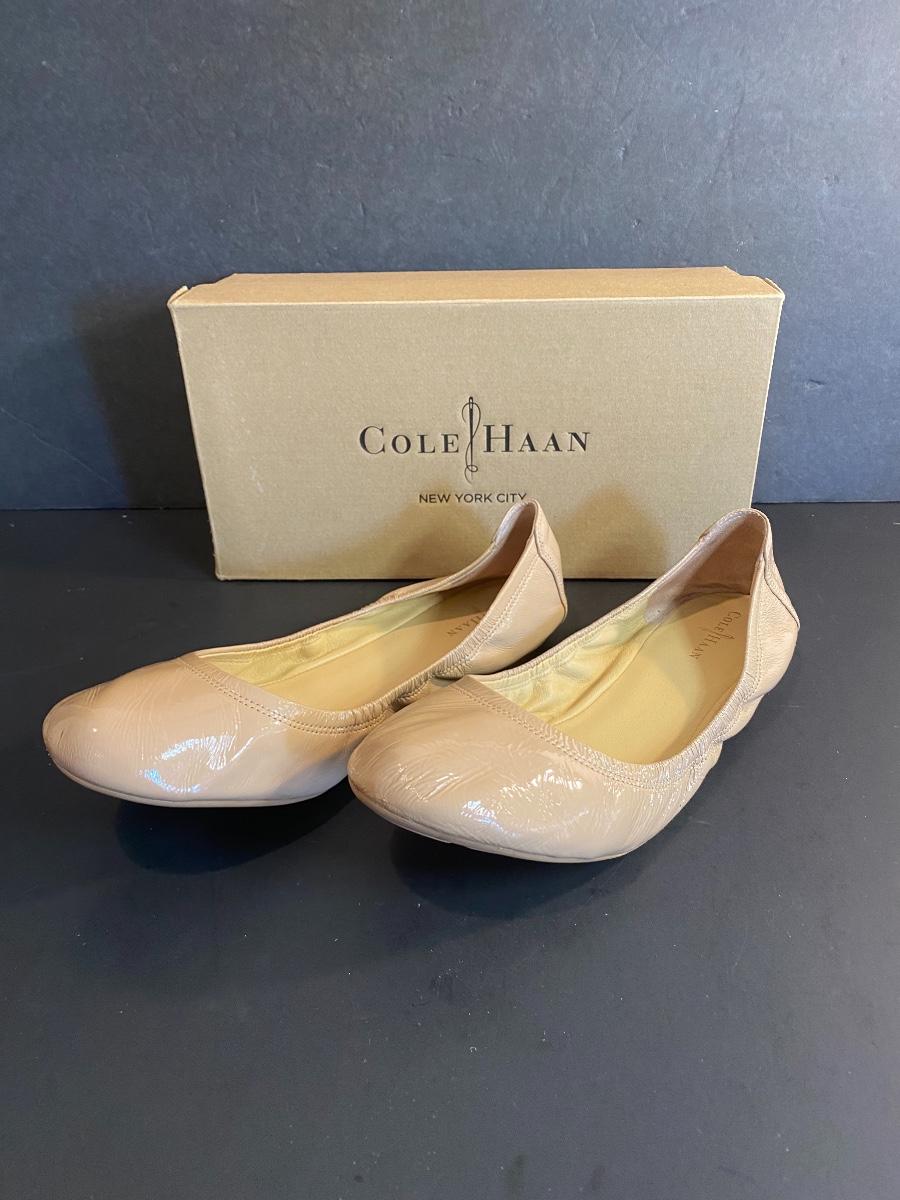 Two pair of designer shoes. Size 9. Cole Haan ballet flats. Stuart Weitzman wedge slides.