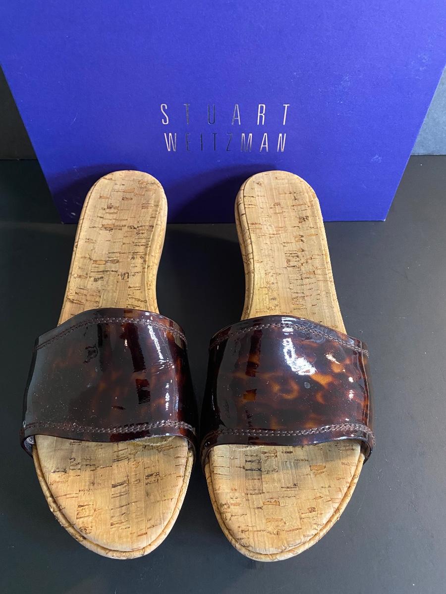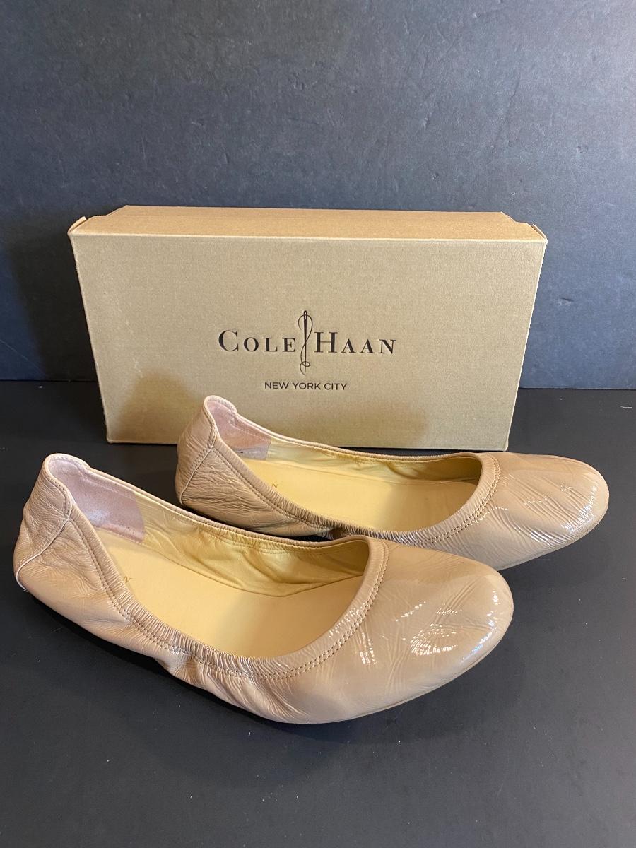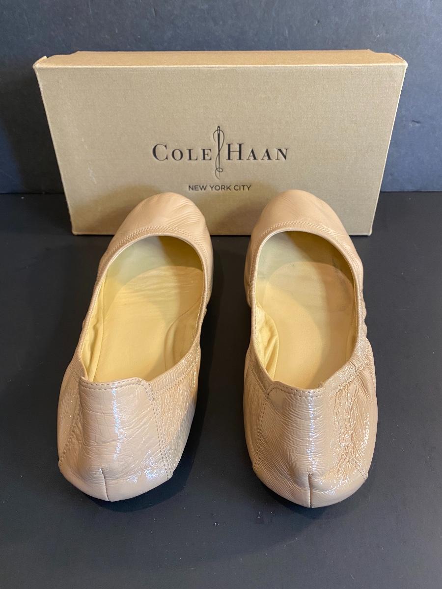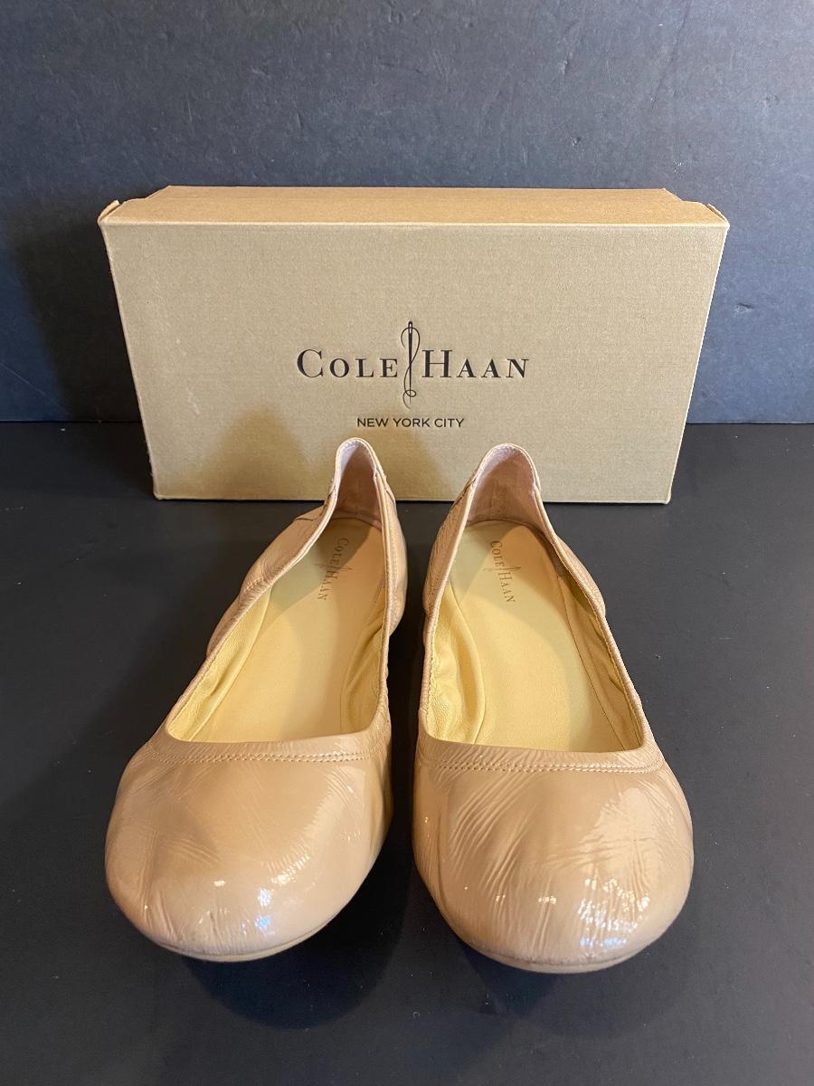 Two pair of designer shoes. Size 9. Cole Haan ballet flats. Stuart Weitzman wedge slides.