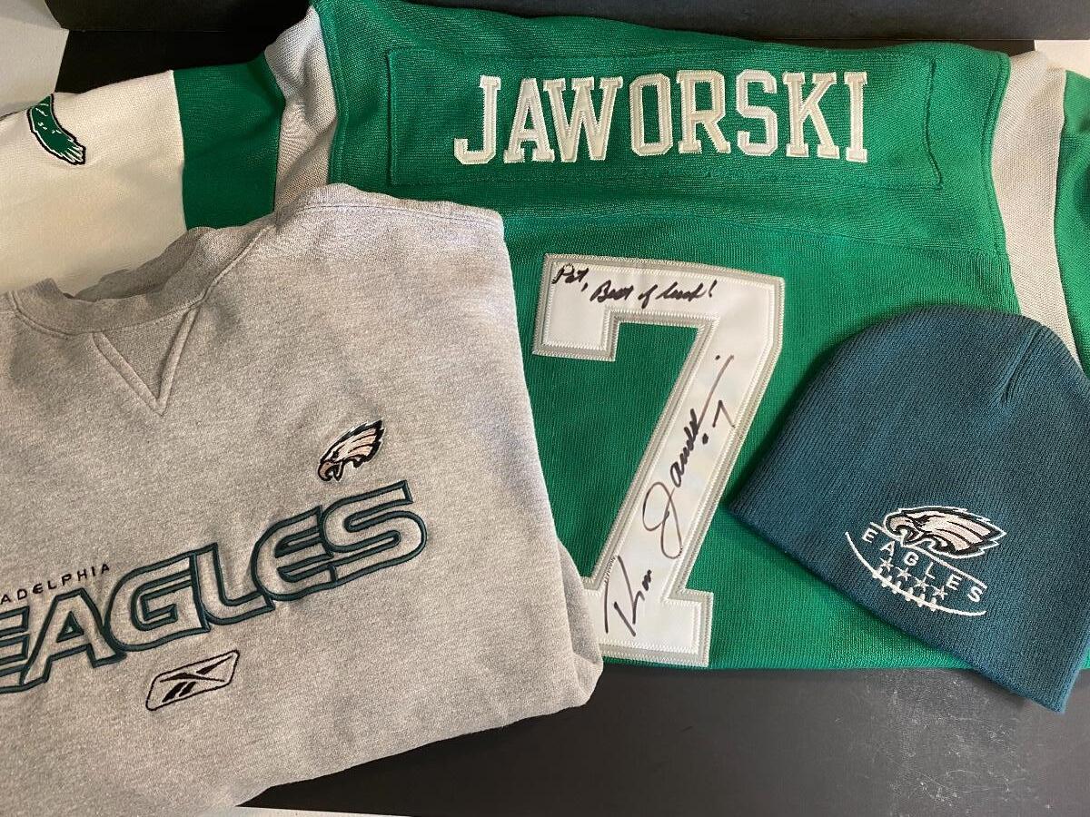 Lot 359: Vintage Eagles Gear (Signed Jaworski Shirt)