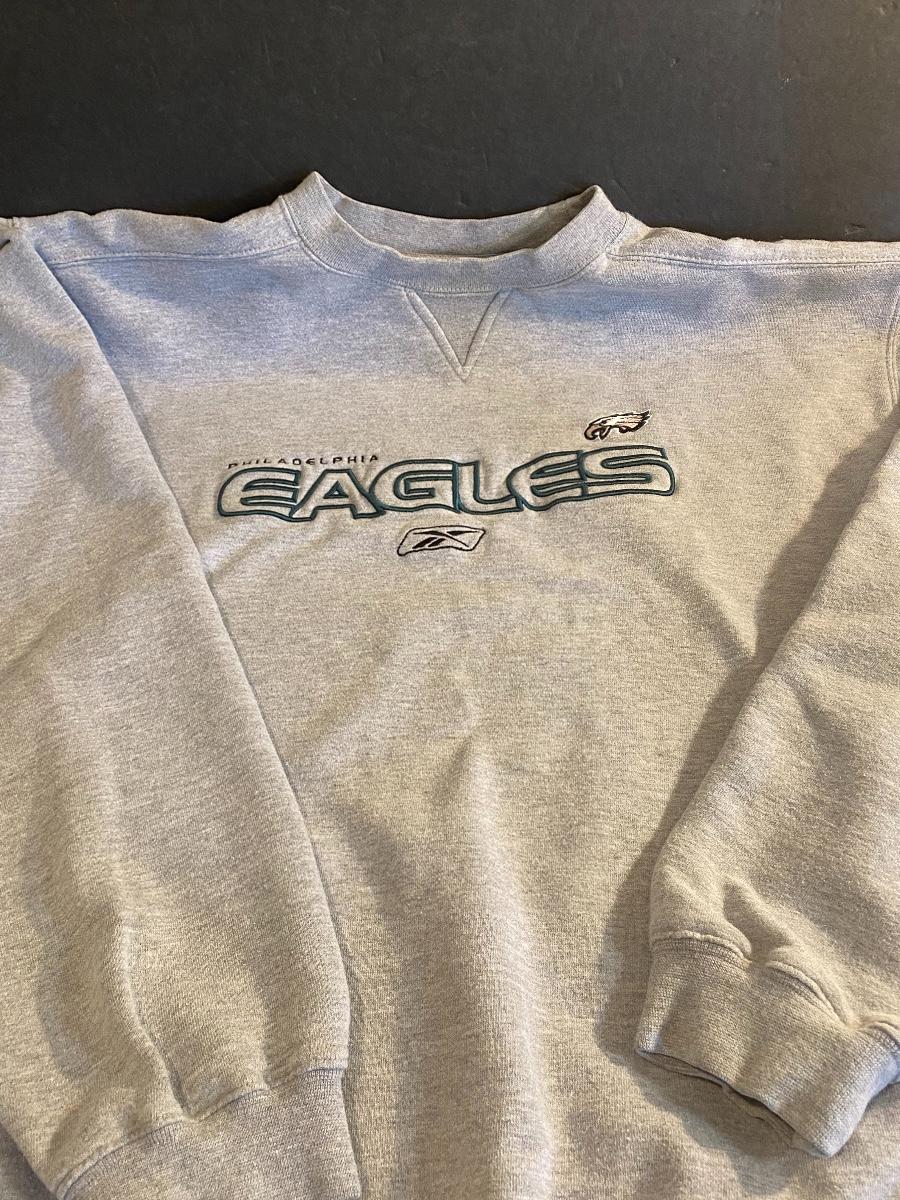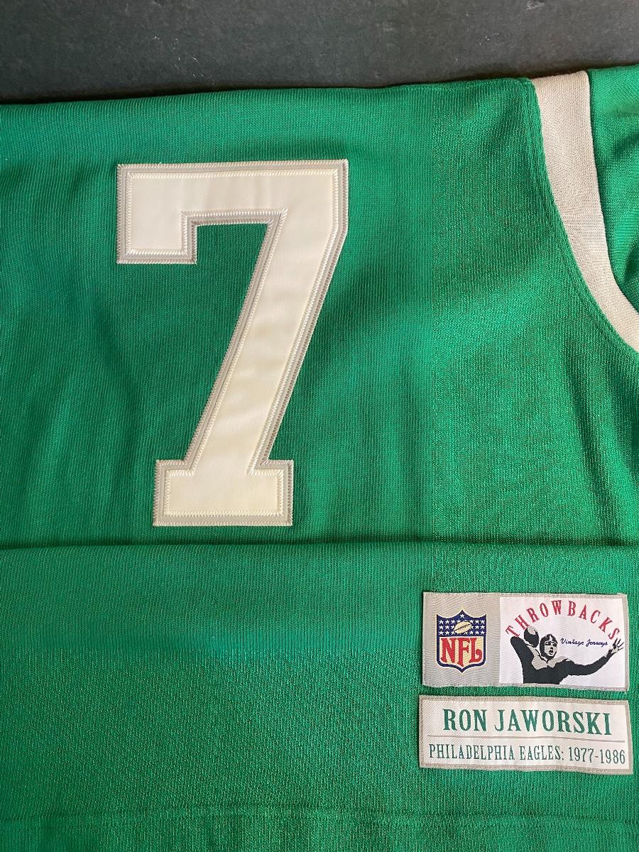 Signed Ron Jaworski Eagles shirt. Eagles sweatshirt and hat. These are size Large, but they may be smaller due to washing and age. Please see all pictures for content of the lot, condition of the lot, and measurements if taken. Pictures are the best representation of the items listed and items are untested unless indicated in description. Thank you for looking and have fun bidding![