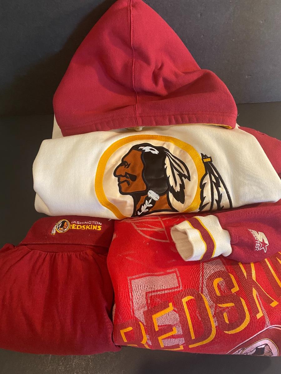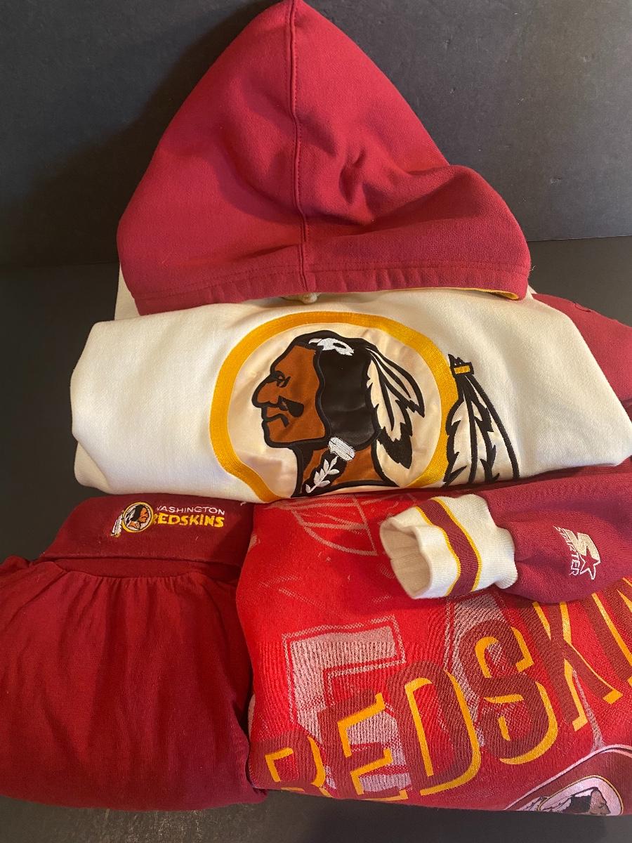 Redskins Starter Hoodie XL, Redskins turtleneck and vintage Redskins sweatshirt. These are vintage and may fit smaller than XL. Please see all pictures for content of the lot, condition of the lot, and measurements if taken. Pictures are the best representation of the items listed and items are untested unless indicated in description. Thank you for looking and have fun bidding![