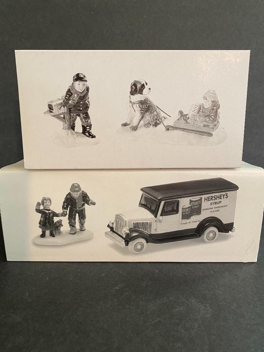 Lot 198: Dept 56 Snow Village Collection Hershey’s Syrup Truck and more