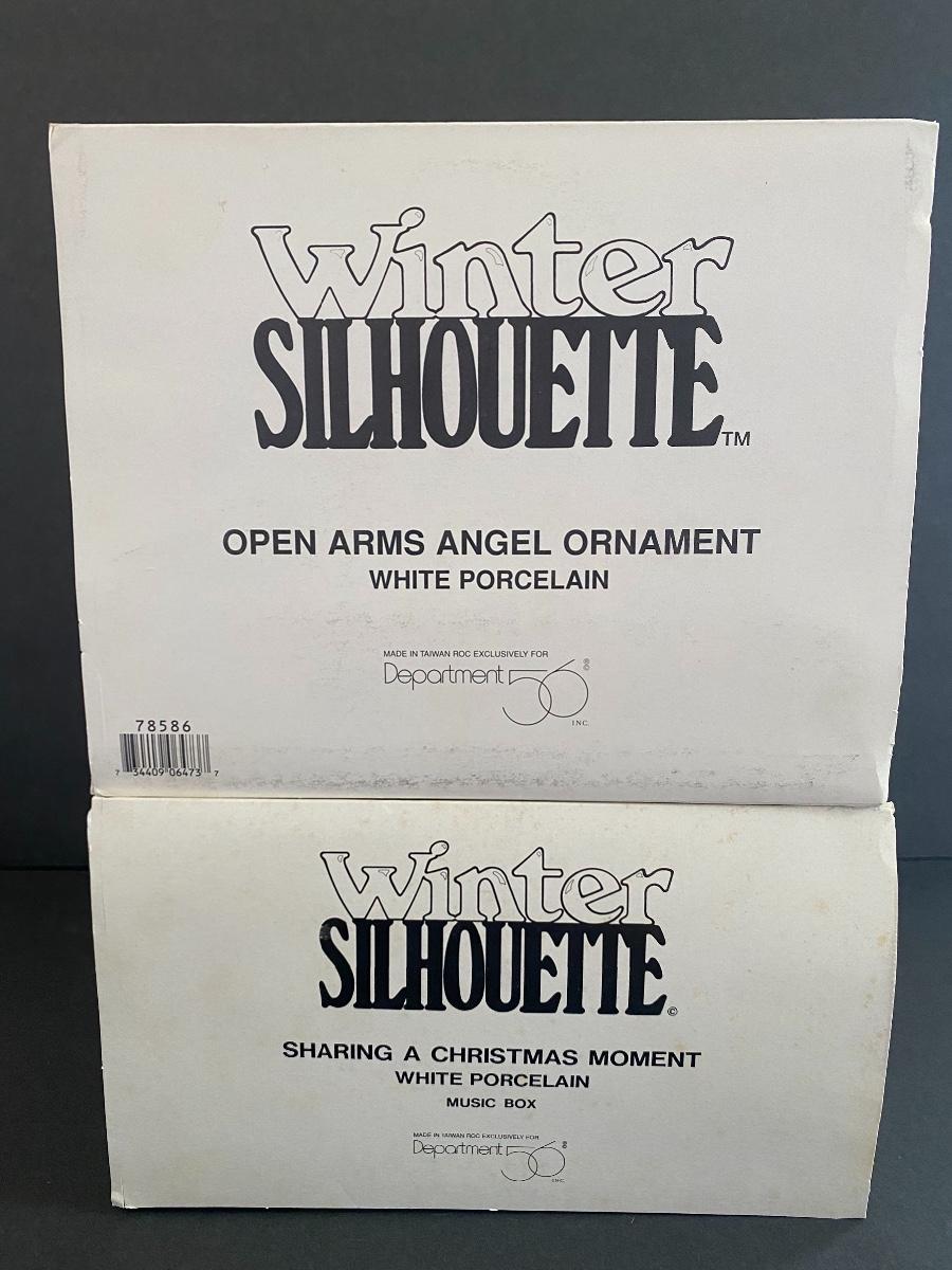 Lot 19: Dept 56 Winter Silhouette Collection “Sharing a Christmas Moment” and more