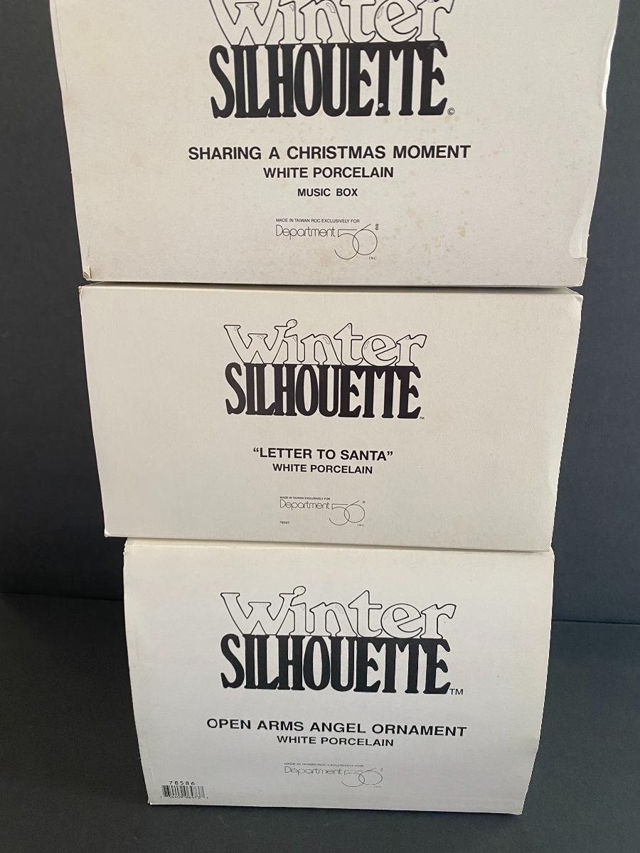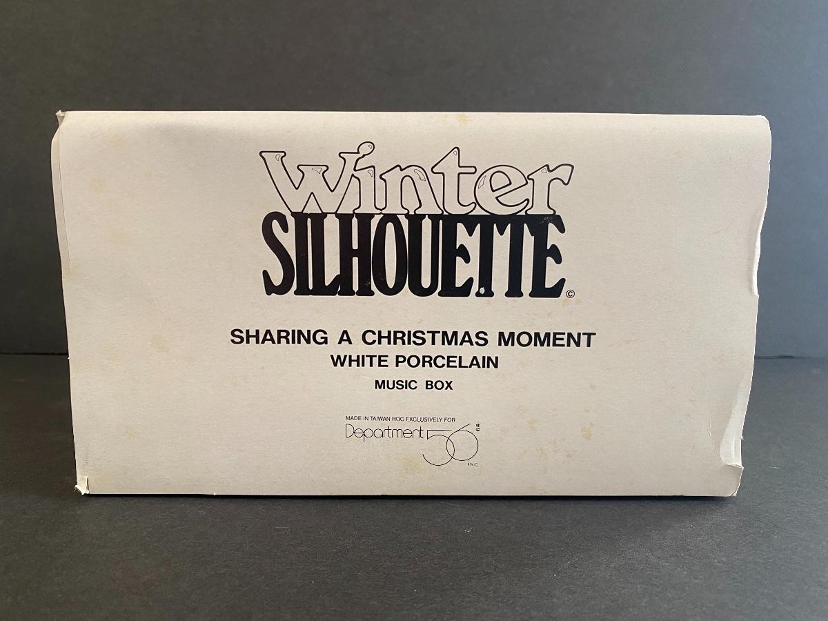Lot 20: Dept 56 Winter Silhouette Collection “Sharing a Christmas Moment” and more