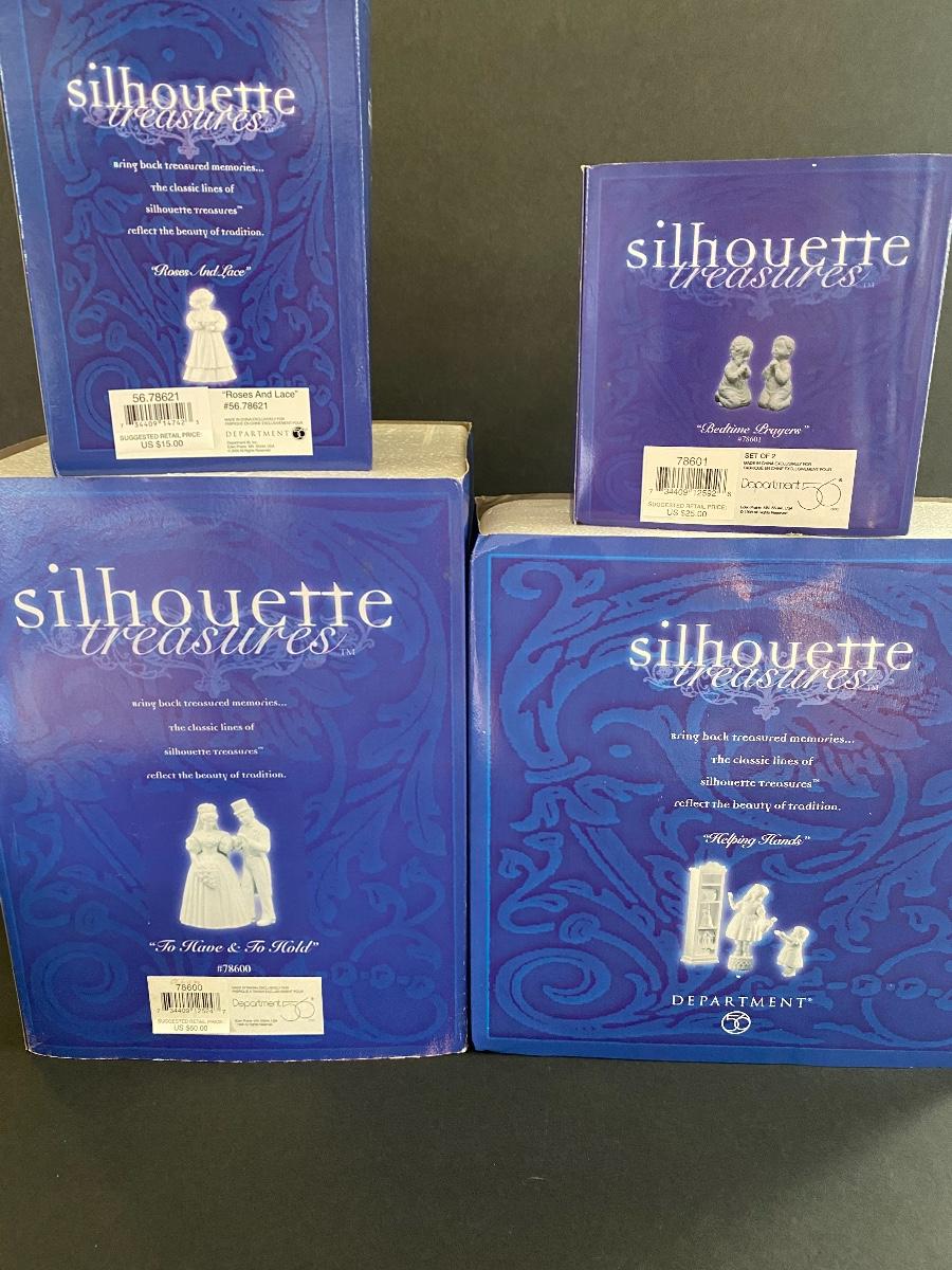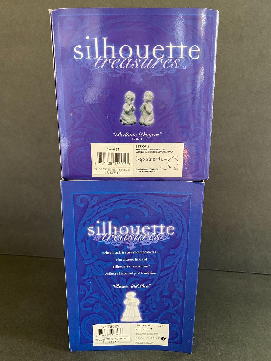 Lot 22: Dept 56 Silhouette Treasures Collection “Bedtime Prayer” and more