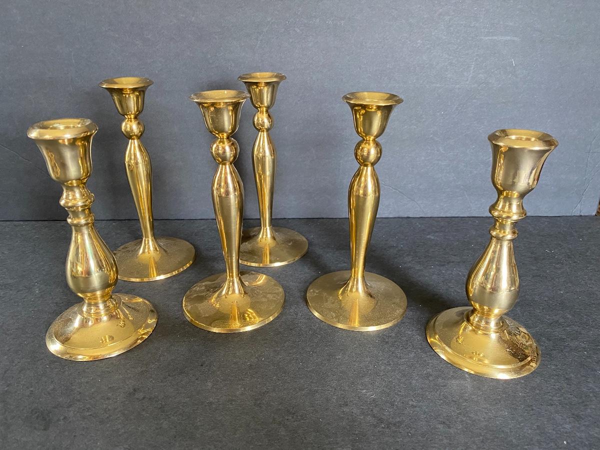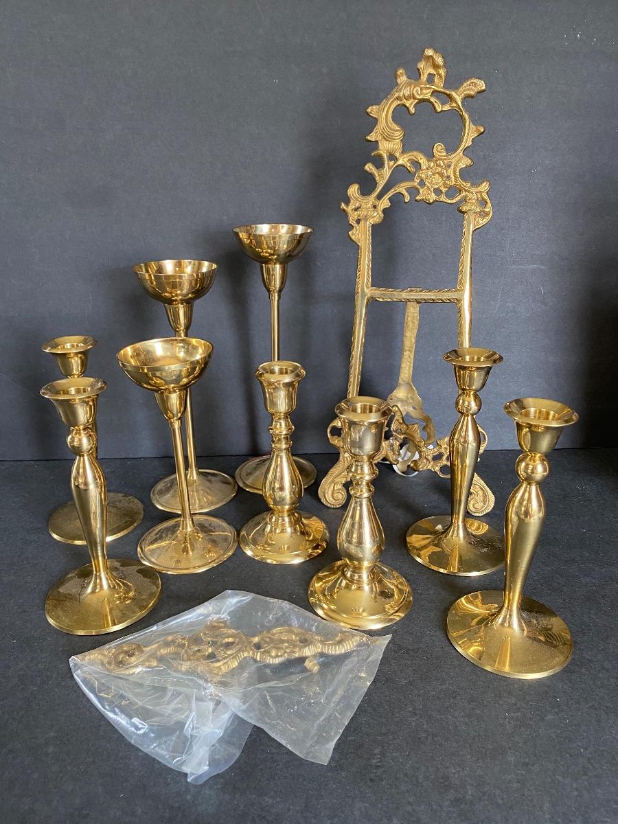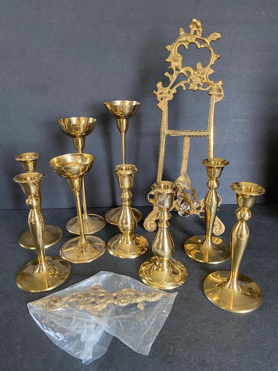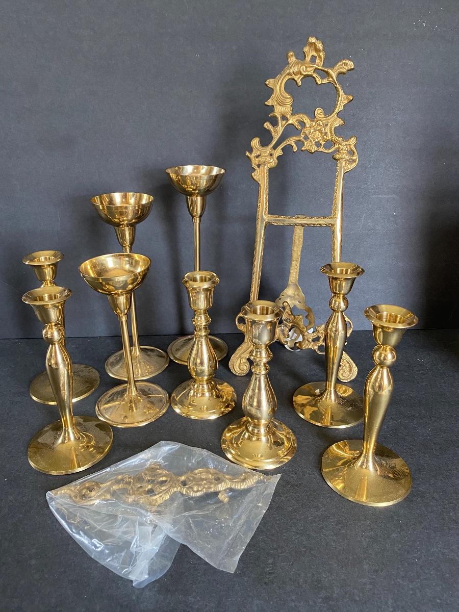 Lot 127: Brass Candlestick Collection & Frame Holder