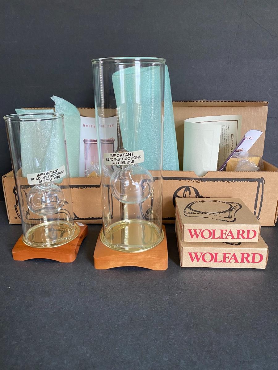 Lot 511: Set of Wolfard Handblown Glass Oil Lamps and Bases