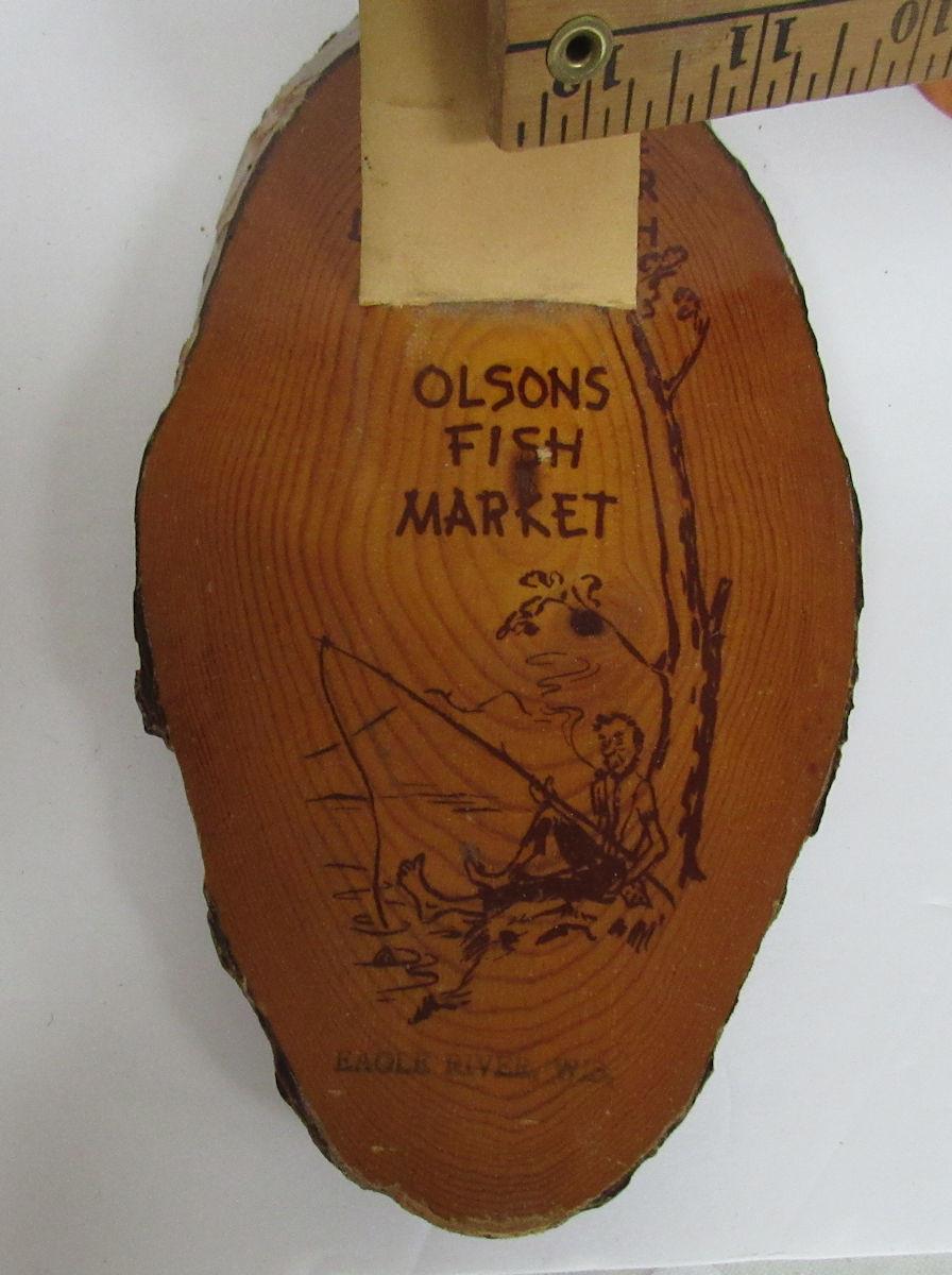 Vintage "Up North" Wall Plaque Advertising From Olson's Fish Market Eagle River Wisconsin, 1950-60s Rustic Decor