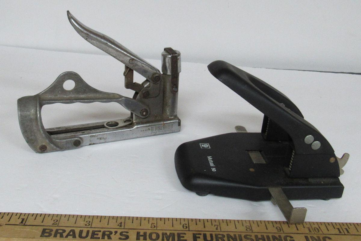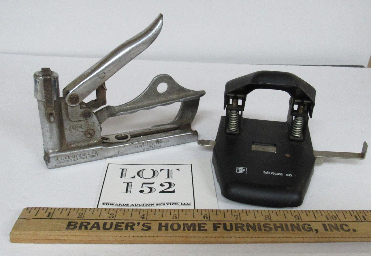 Old Heavy Duty Stapler, Kling Tite AL Hansen Mfg Co, and Good Quaity 3 Hole Punch, Mutual 50