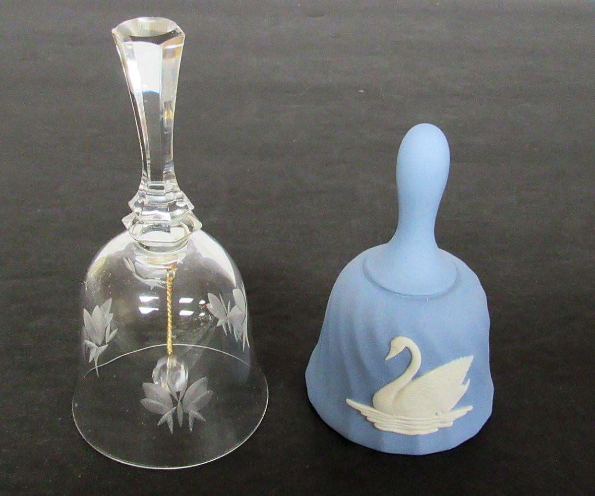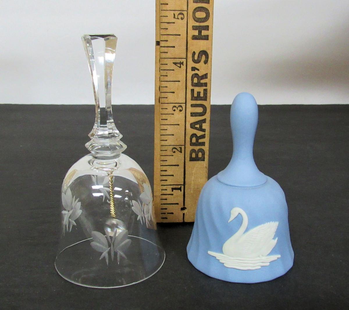 Vintage Wedgwood Jasperware Bell, Unsigned Clear Glass With Cut Butterfly Style Theme