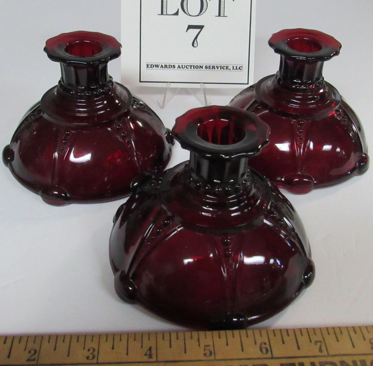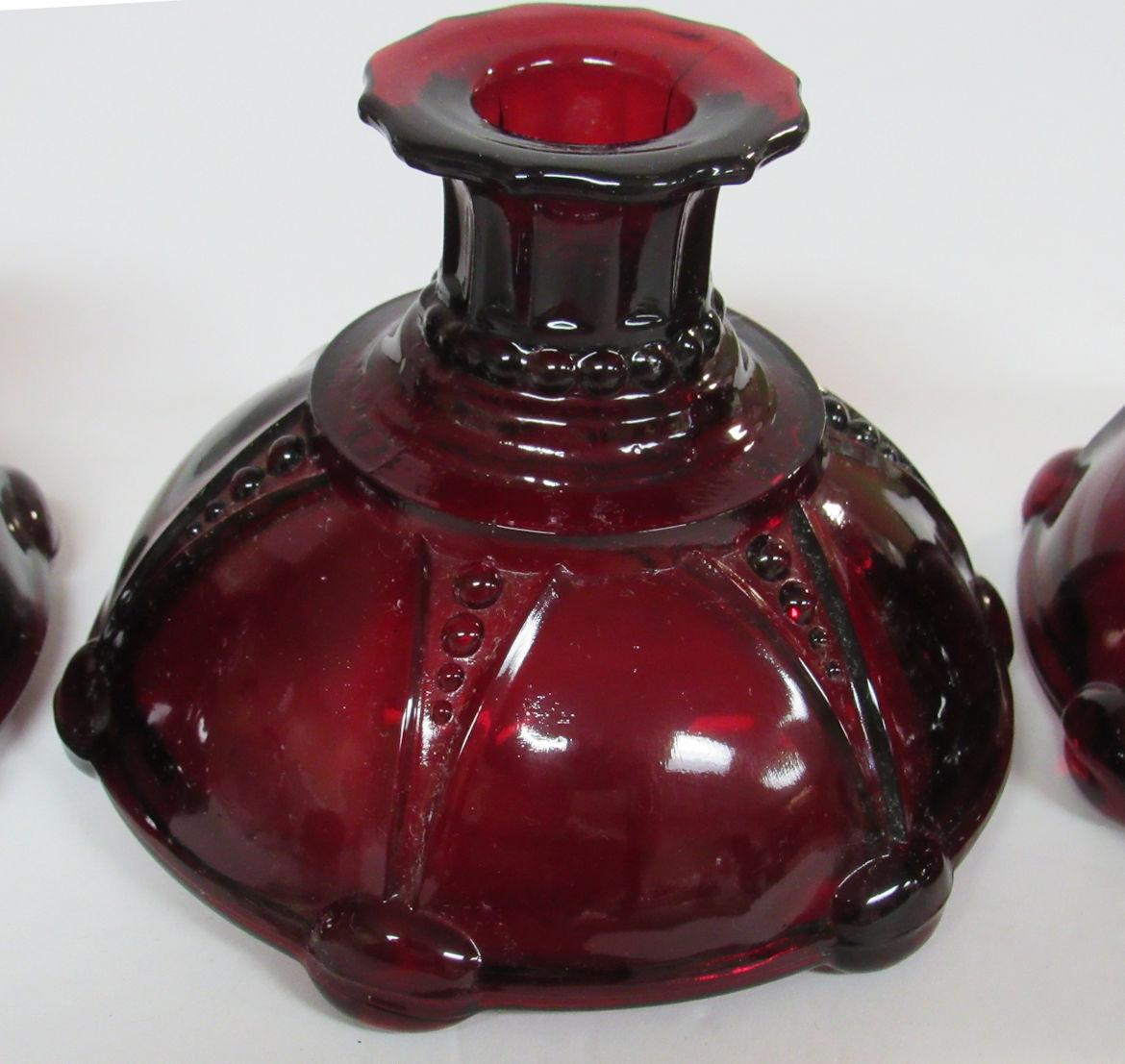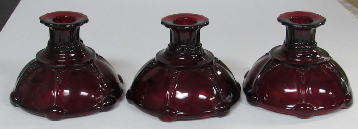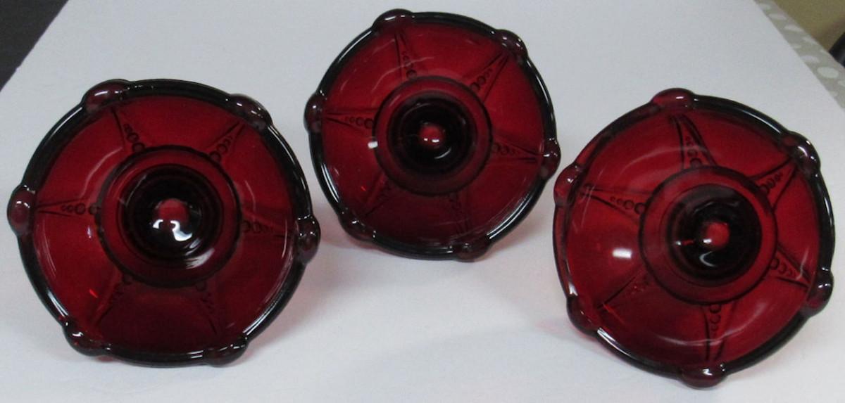 3 Depression Glass Ruby Red Oyster and Pearl Candle Holders