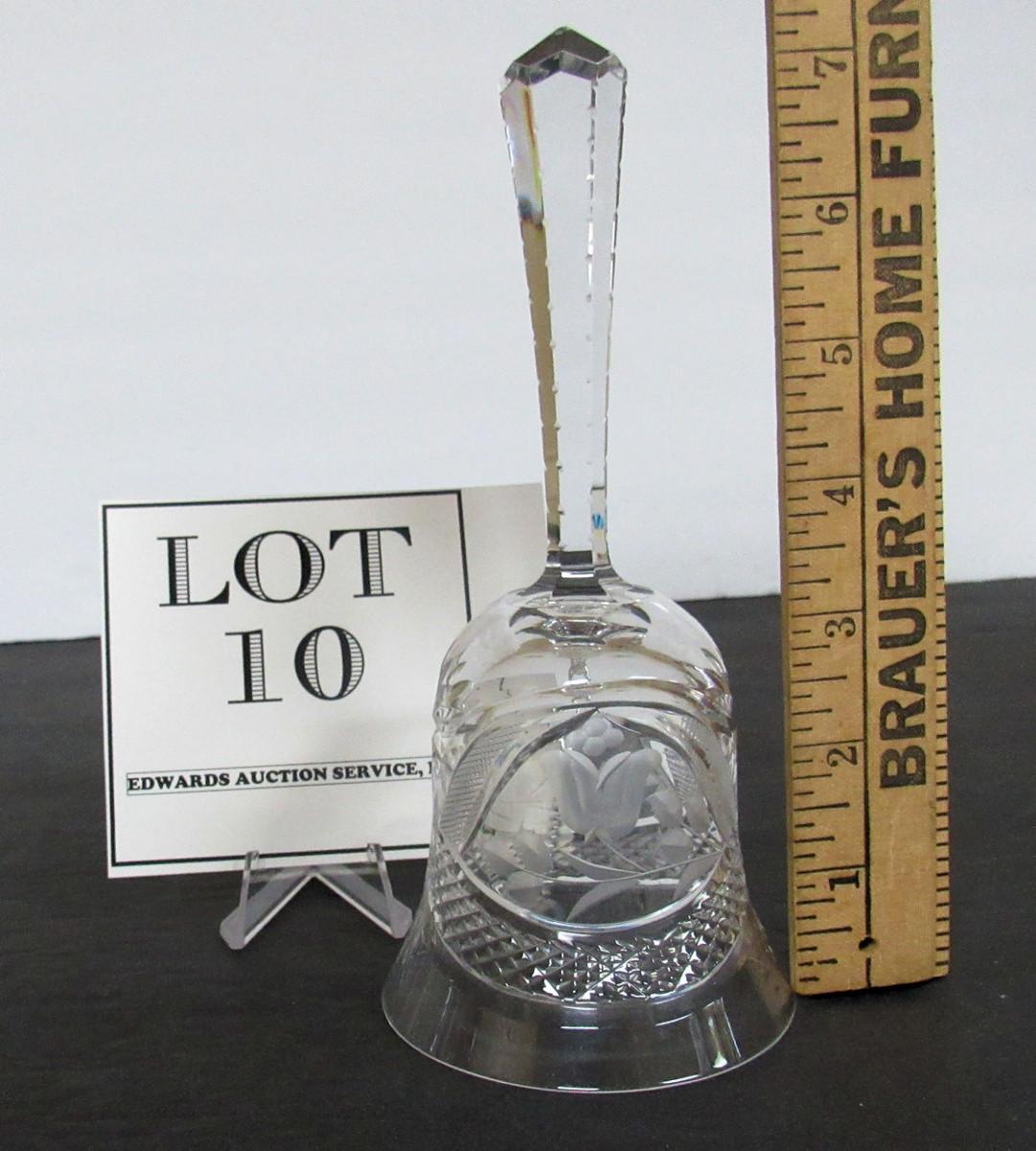 Beautiful Tall Cut Glass Bell With Floral Cutting, See Photos