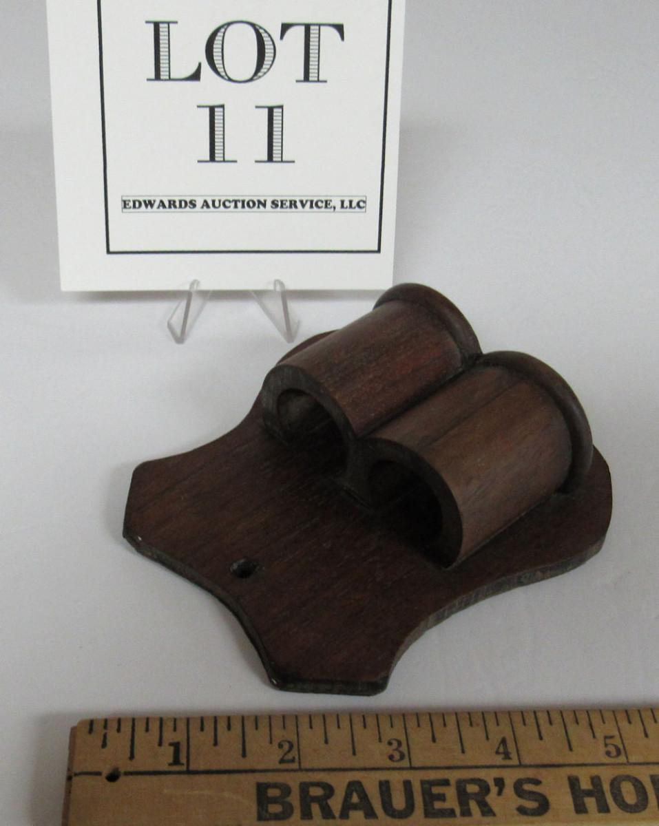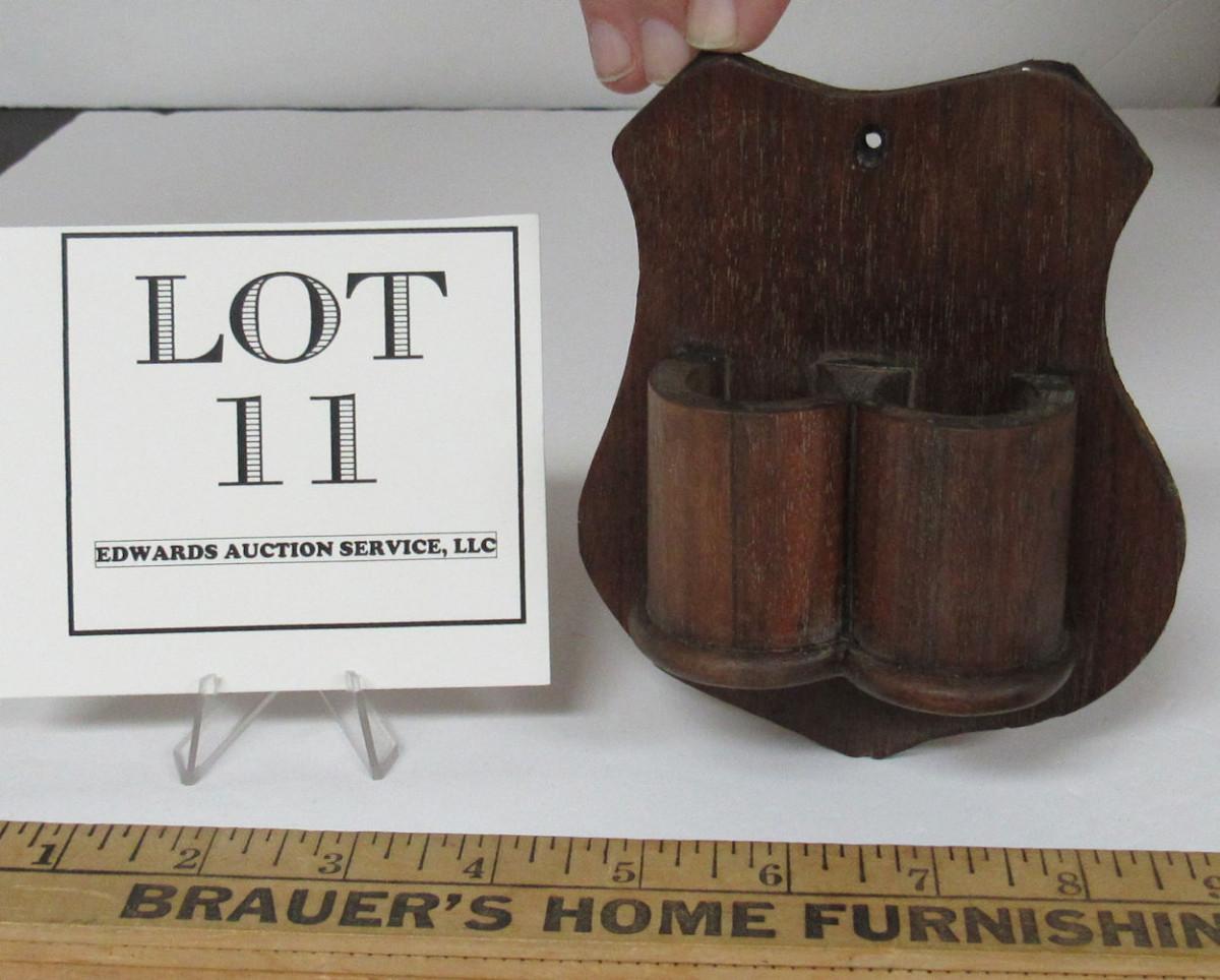 Antique Wood Double Match Holder Wall Pocket