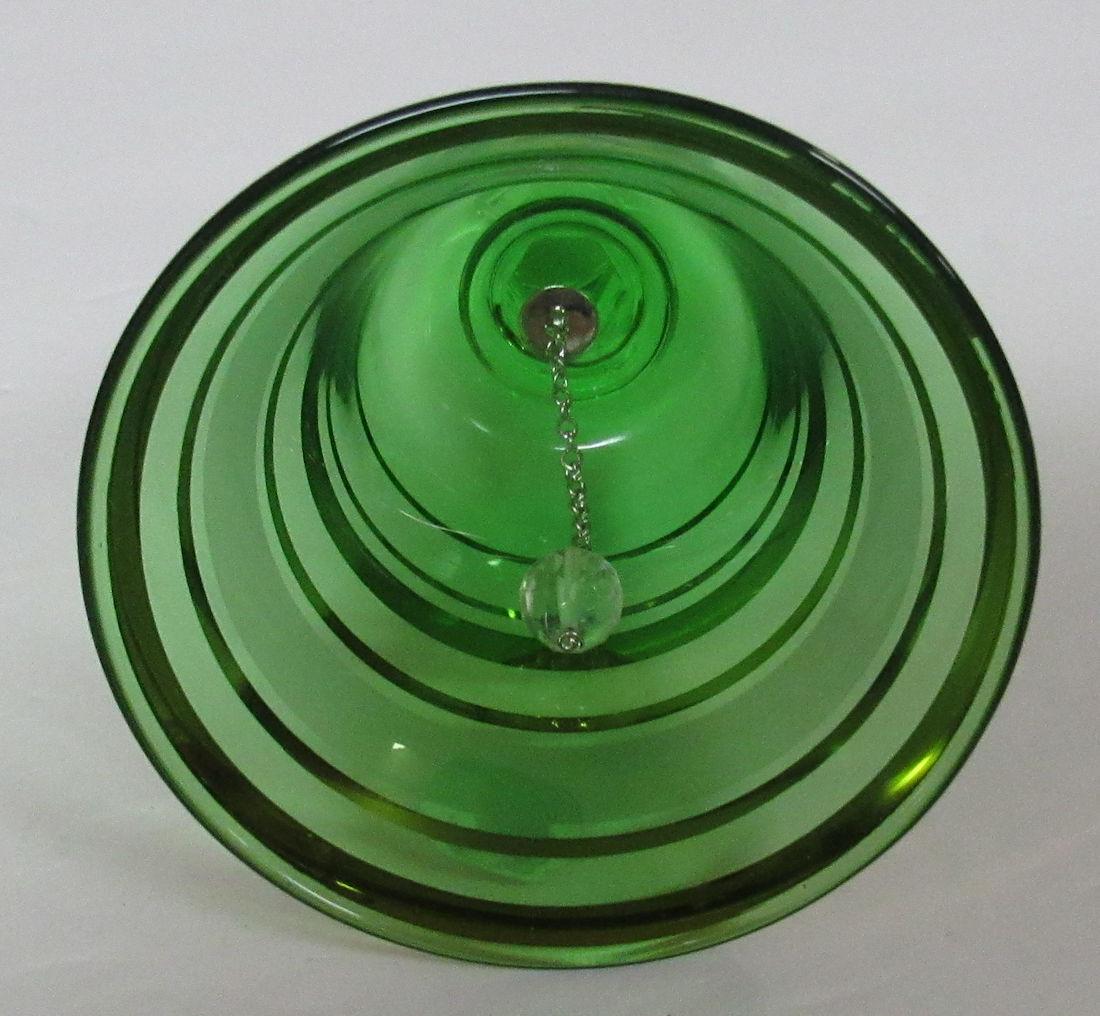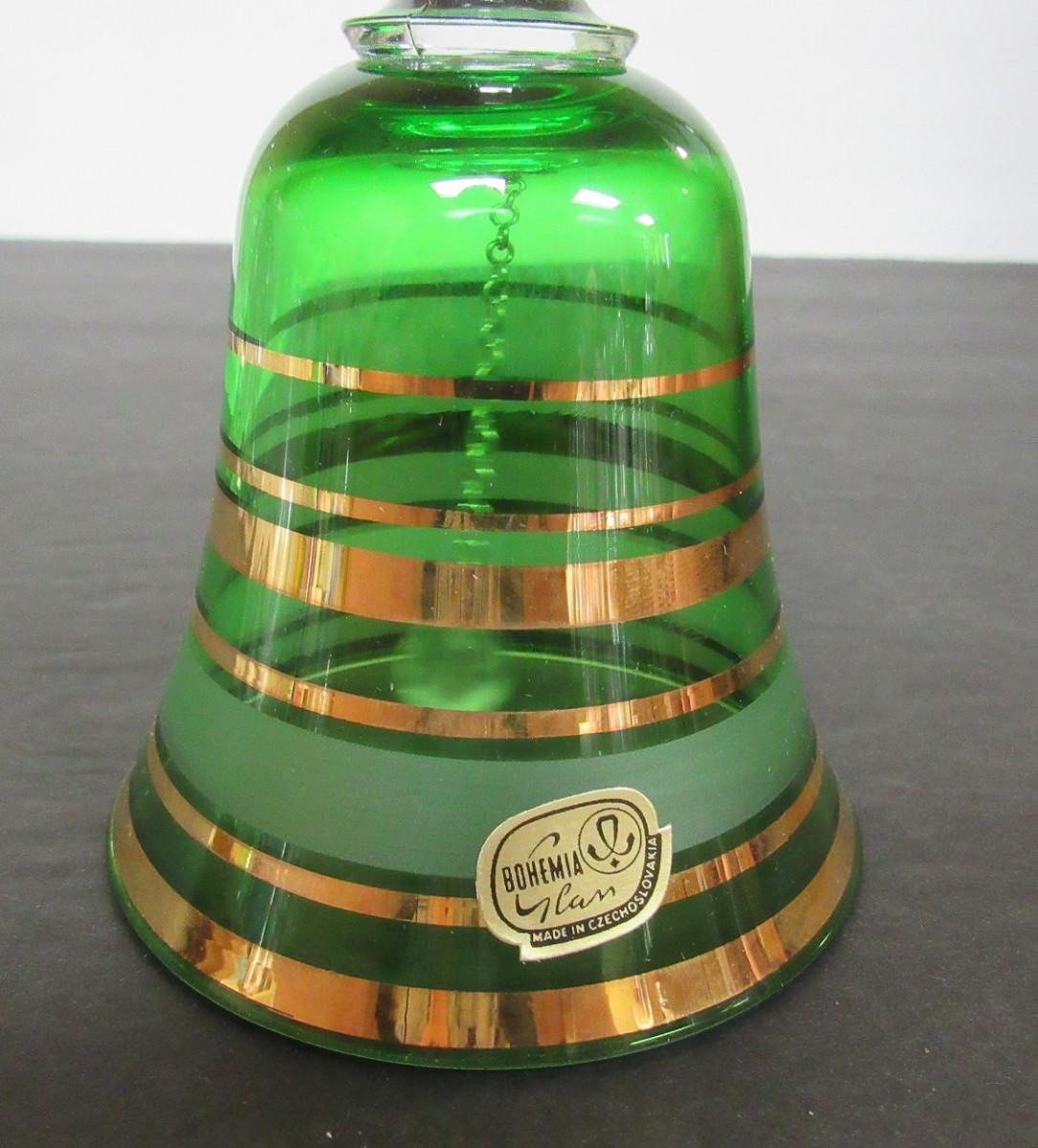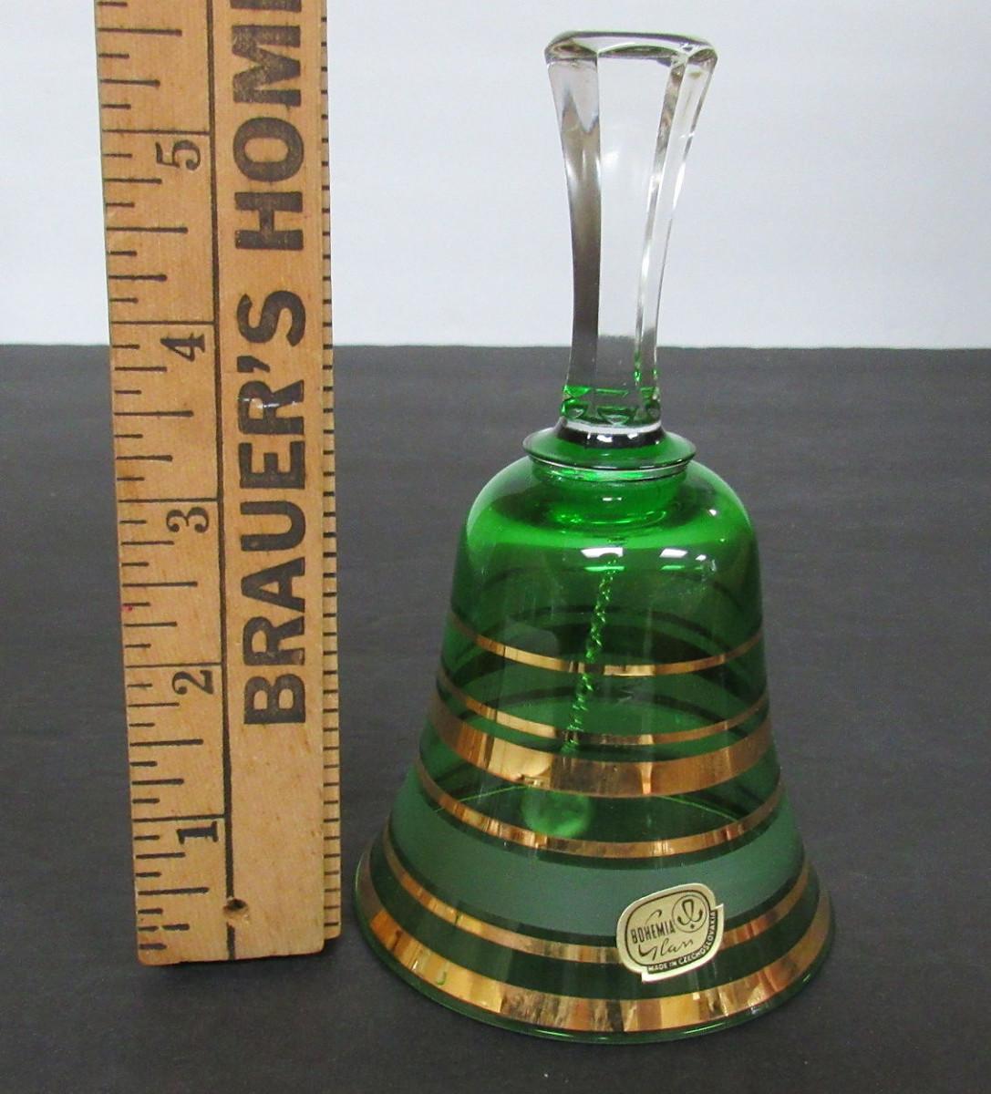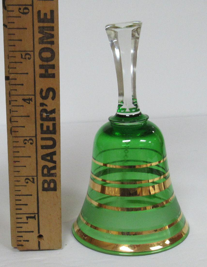 Vintage Bavarian Glass Bell, Green With Gold Bands