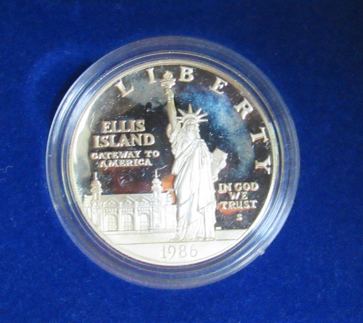 US Mint 1986 S Liberty, Ellis Island Silver Dollar, Clad Half Proof Set