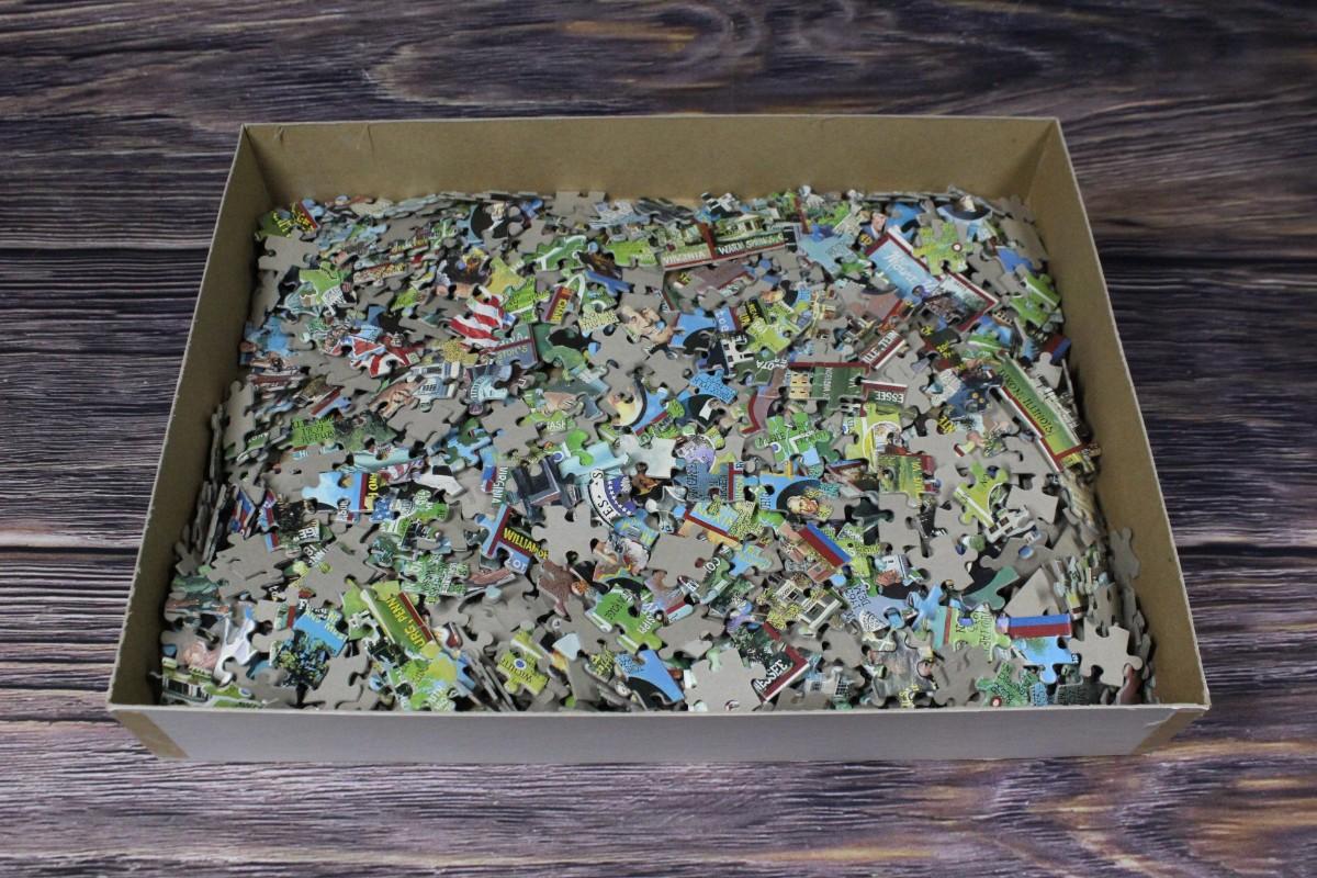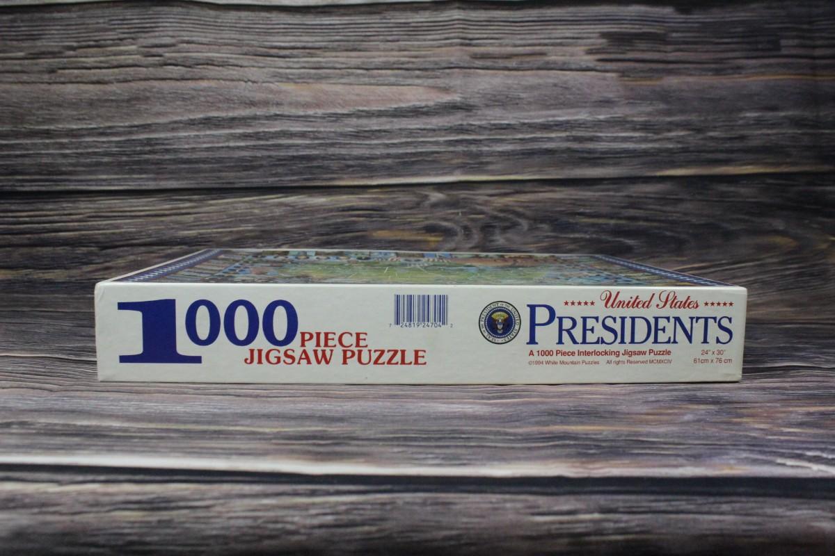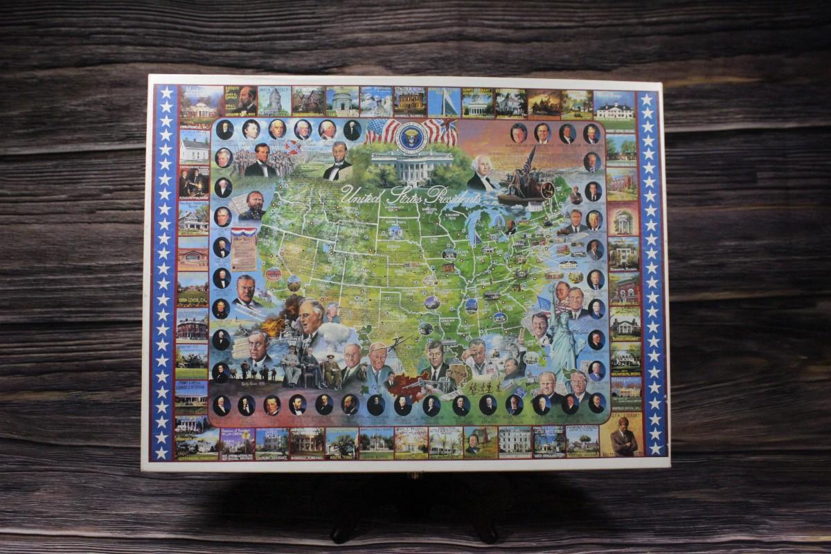 United States Presidents 1000-piece puzzle, there are no puzzle pieces that are ripped or torn. The box has no significant bending or tears.