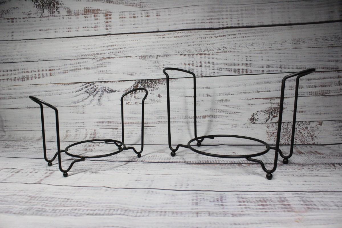 Pair of two different sized decorative metal display stands for vases or pots. There is no significant rusting or chipping to the stands, see photos above for size reference.