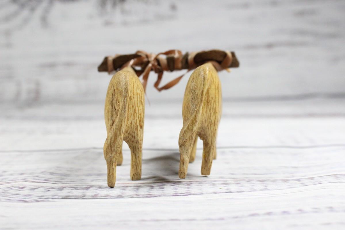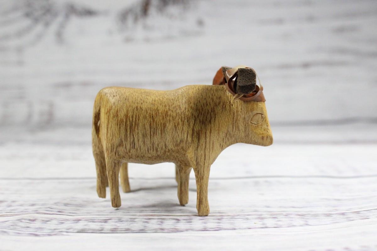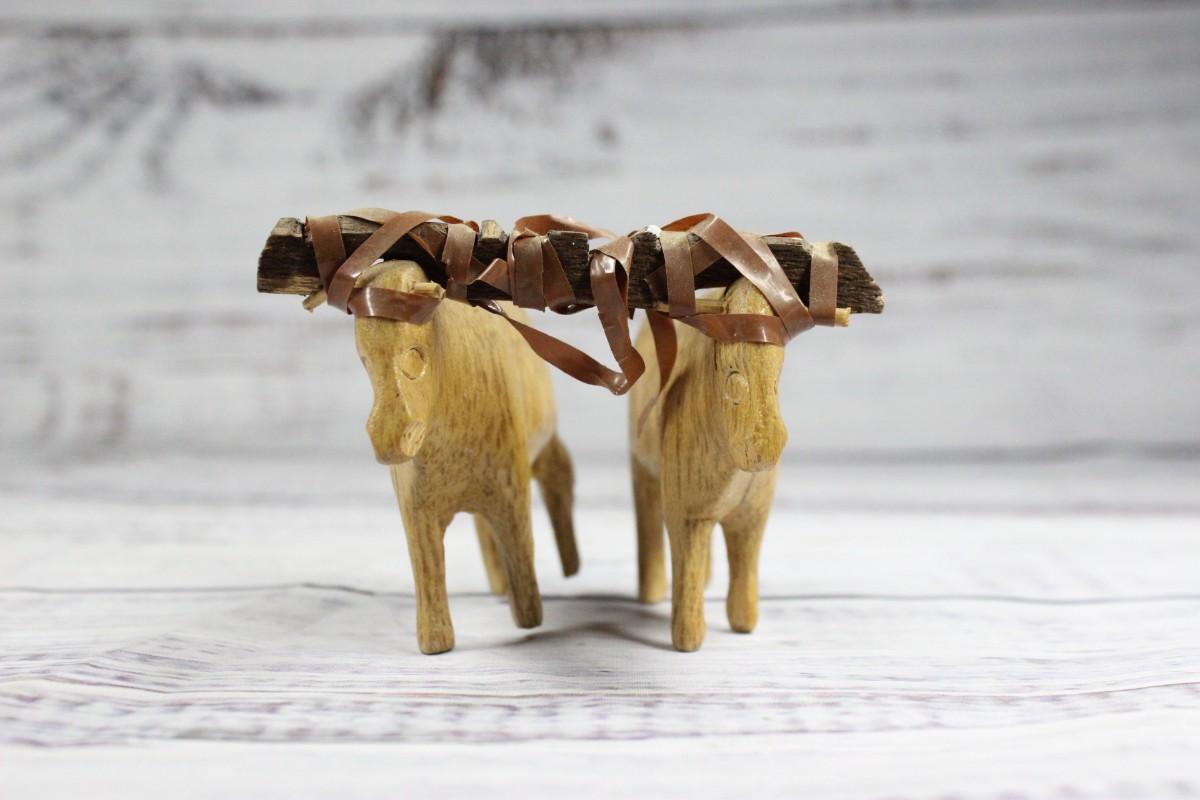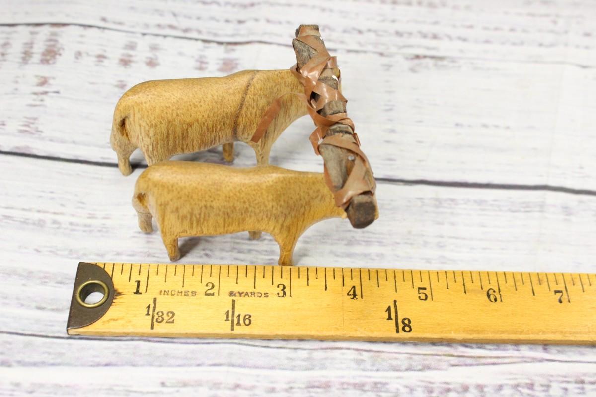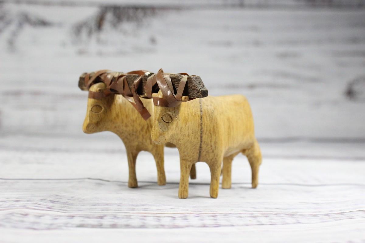 4" wooden Ox figurine depicting two Oxs tied together at the horns. There is no damage to the figurine.