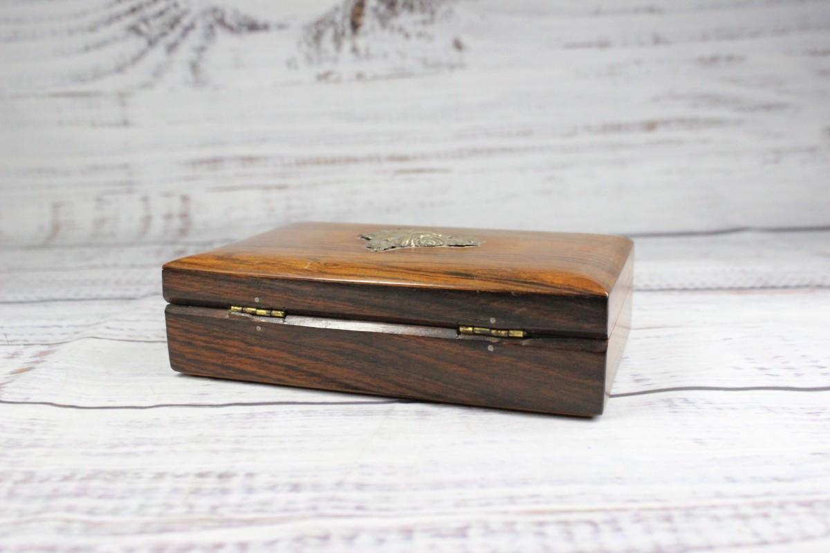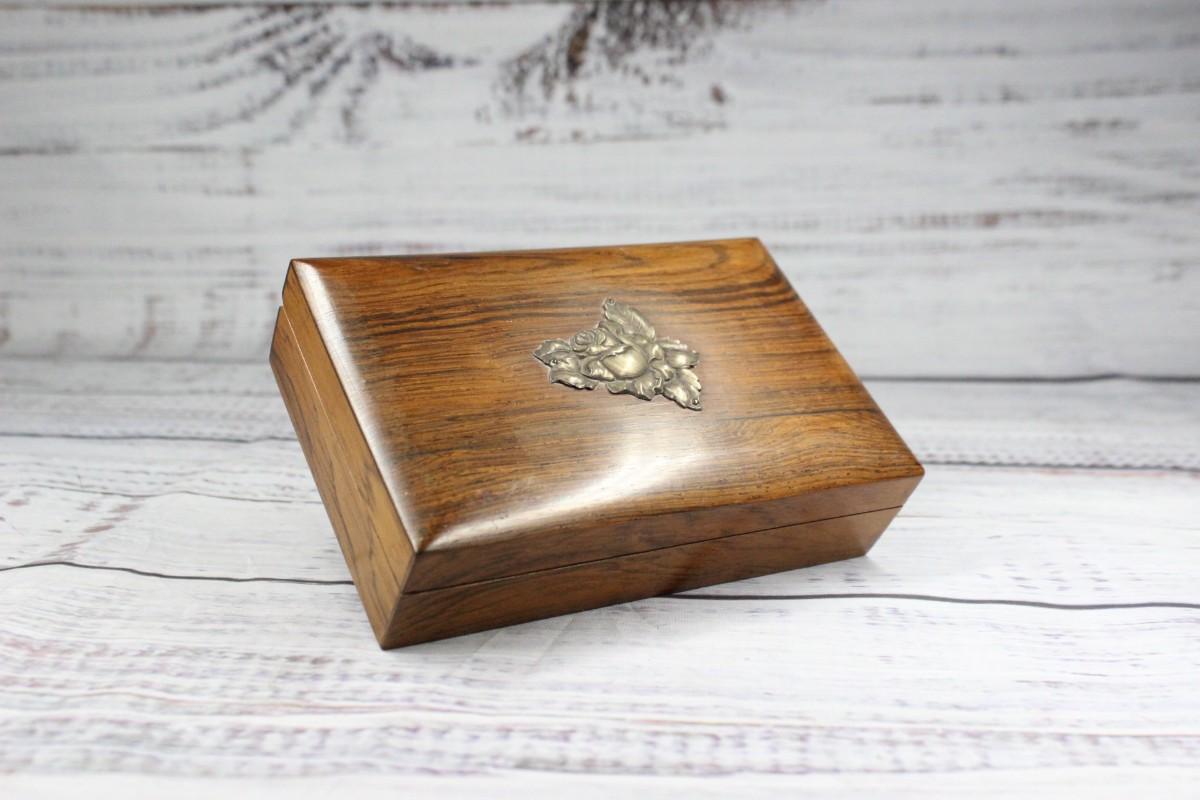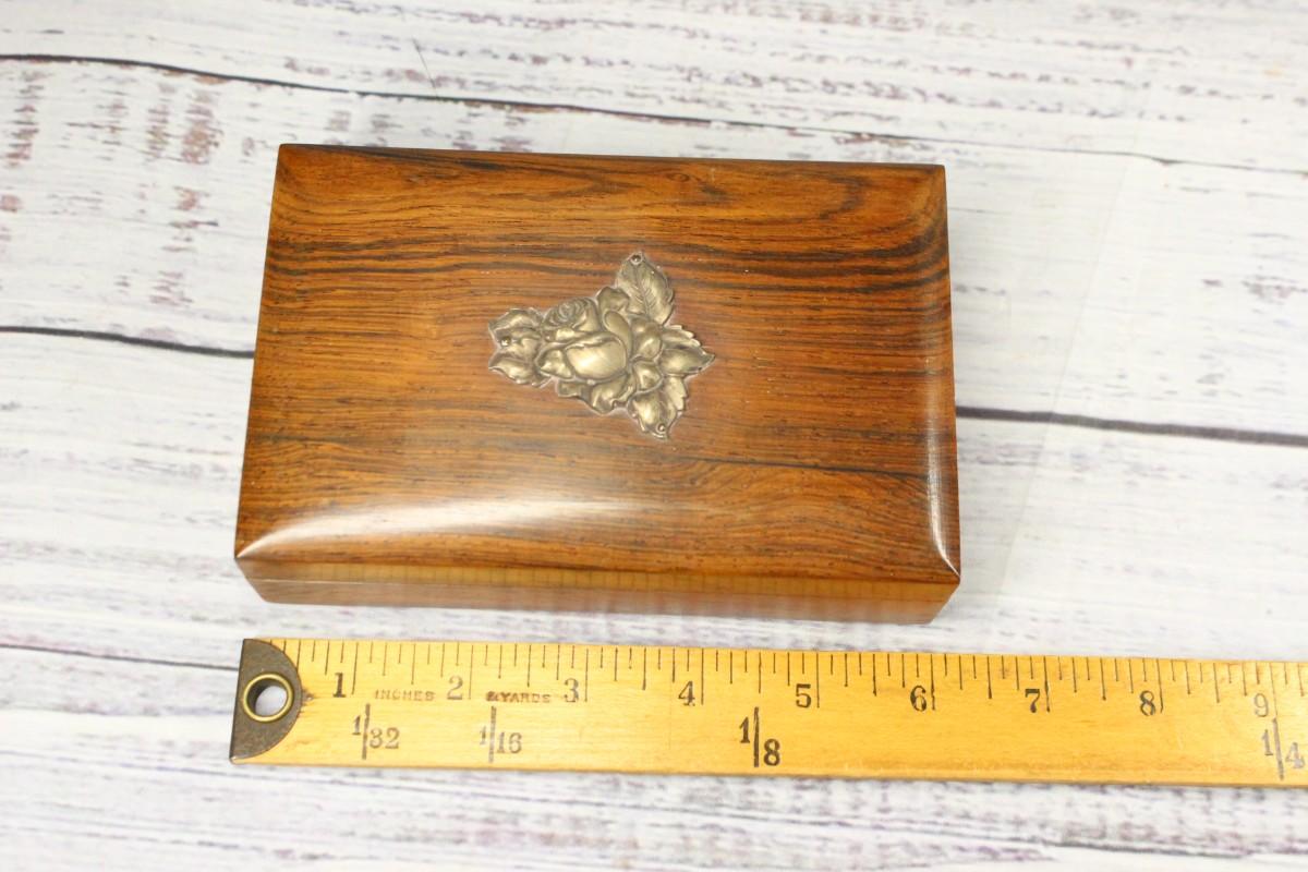Vintage Wooden Jewelry Box with Metal Adorned Rose