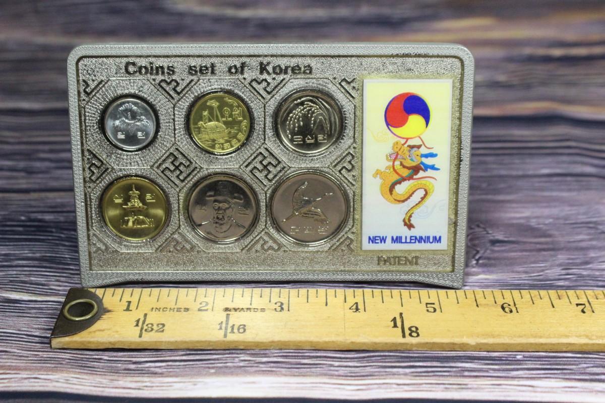 1999 Korean souvenir coin set, there is no significant scratches or chips to the display piece. The currency is made of nickel and copper.