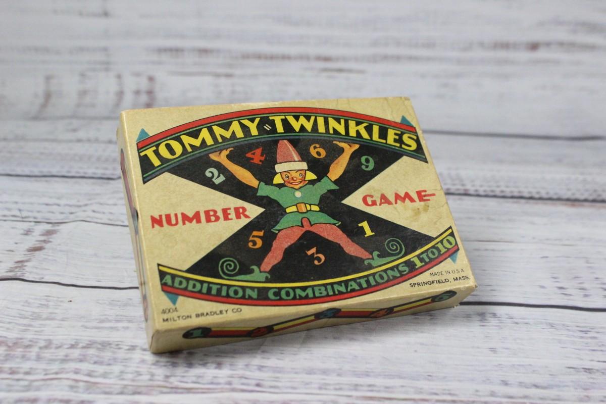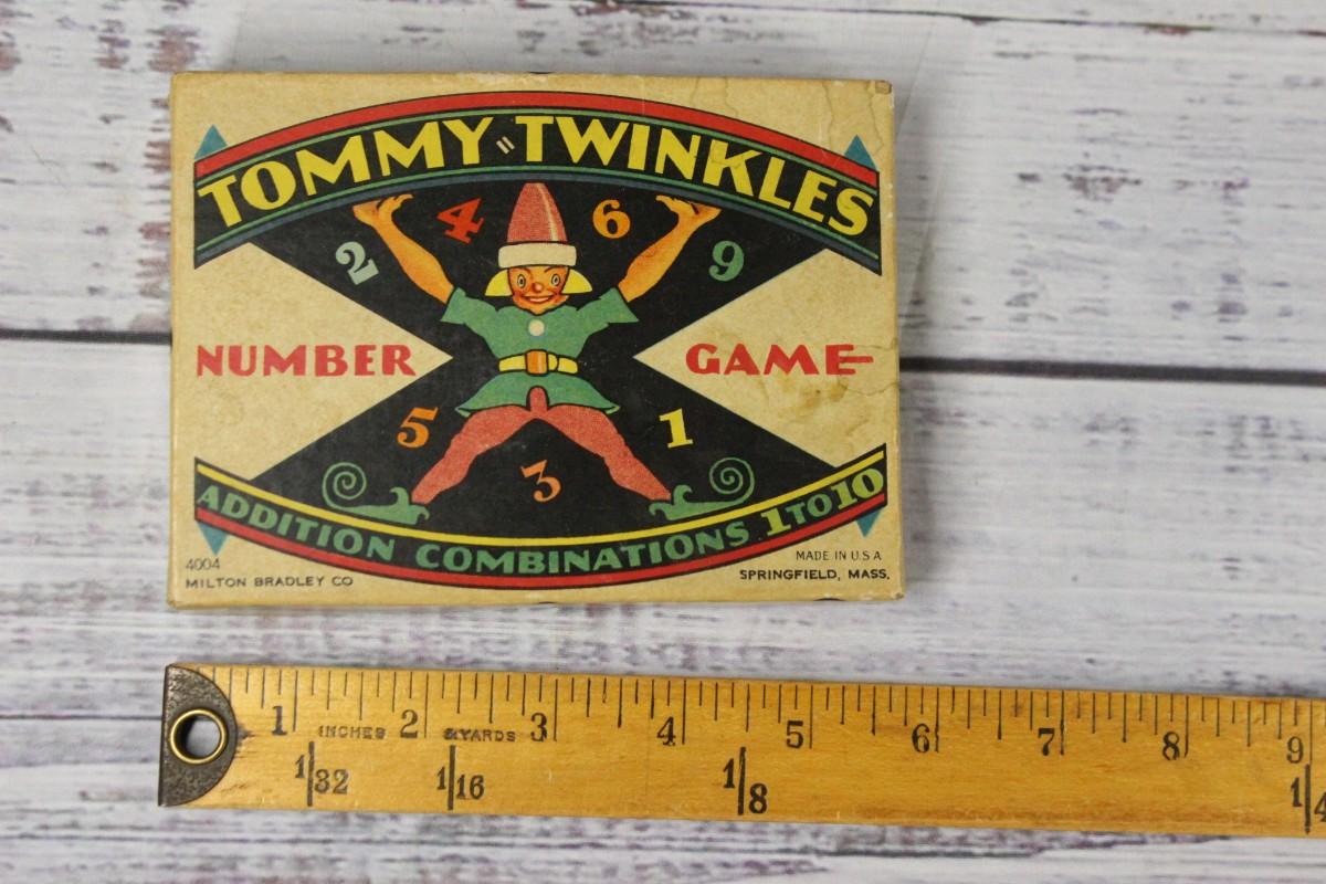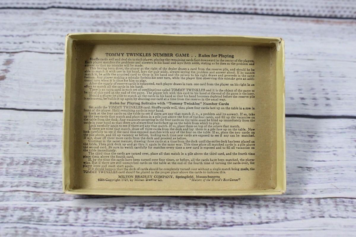 Vintage Tommy Twinkles Number Game, there is no significant bends or folds to the cards and the box. Instructions are printed on the box.