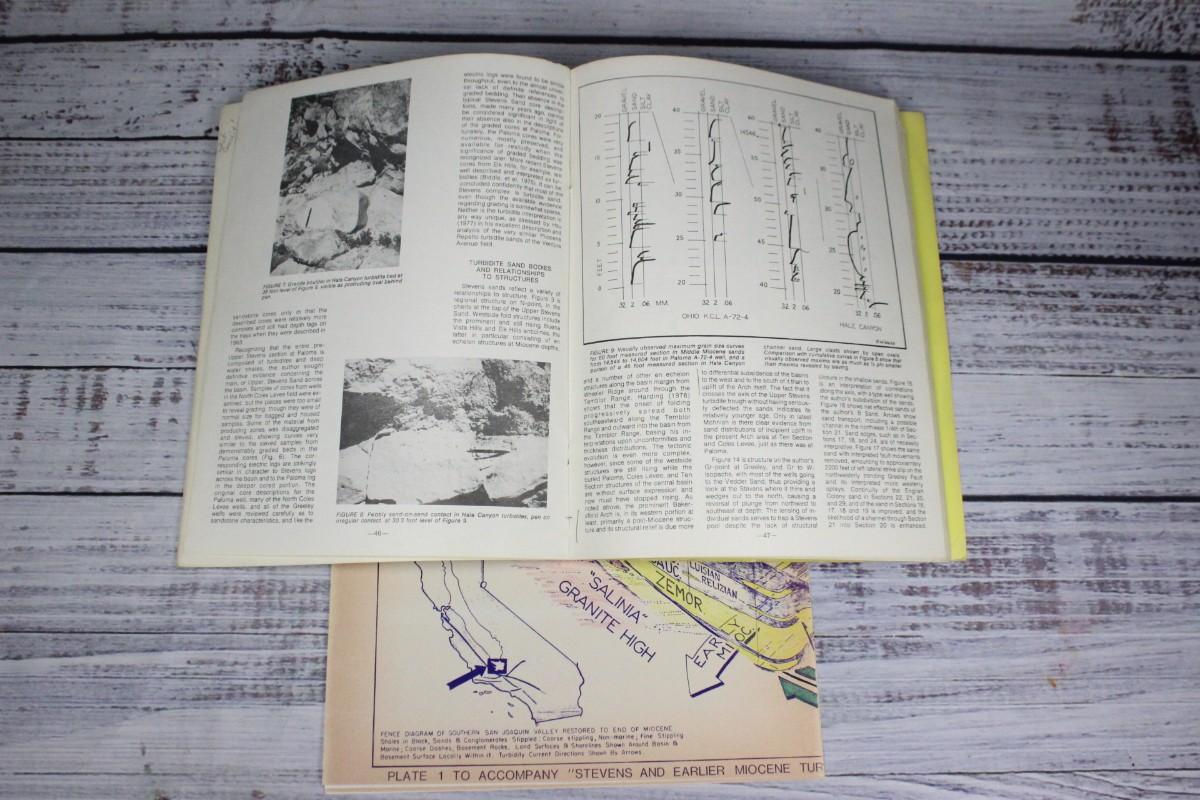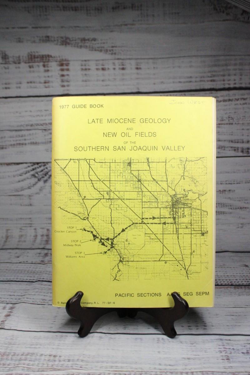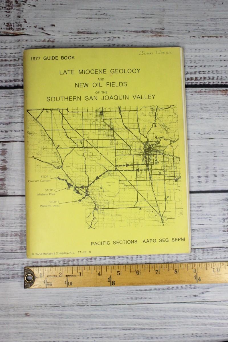 1977 geology guide book and oil fields of the Southern San Joaquin Valley. There is some handwritten notes on some pages and there is some light wear from being handled on the field. Also comes with fold out maps of different locations mentioned in the guide book.