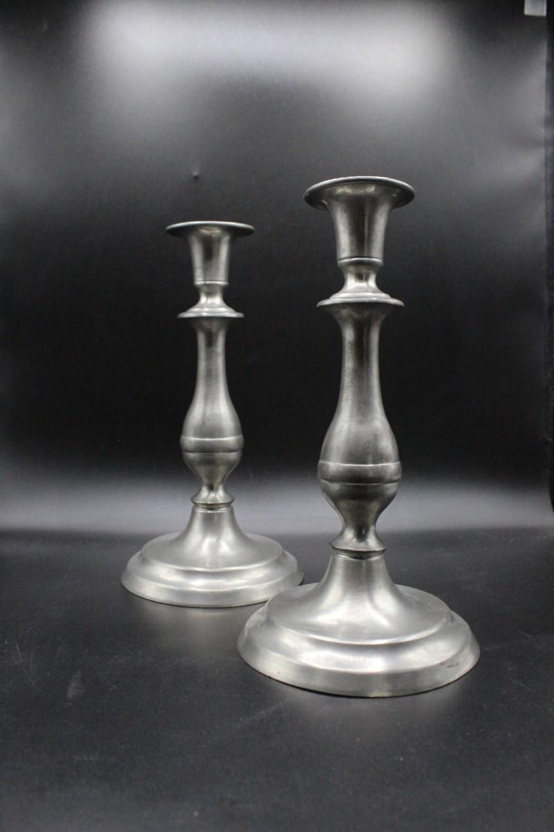 Vintage Pair of Pewter Candlestick Holders from the Henry Ford Museum