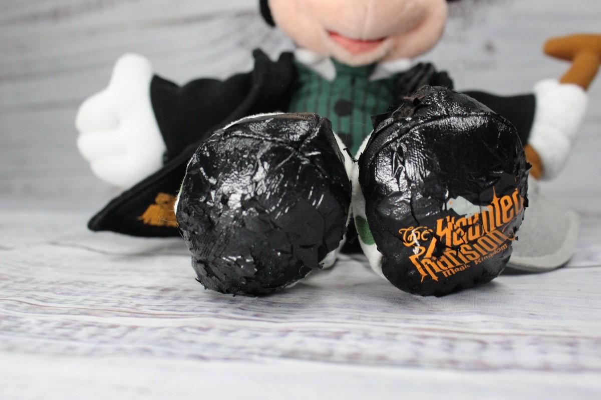 Walt Disney World Haunted Mansion themed Mickey Mouse plush. There is some tearing/cracking on the feet, but there is no other significant ripping or damage to the rest of the plush.