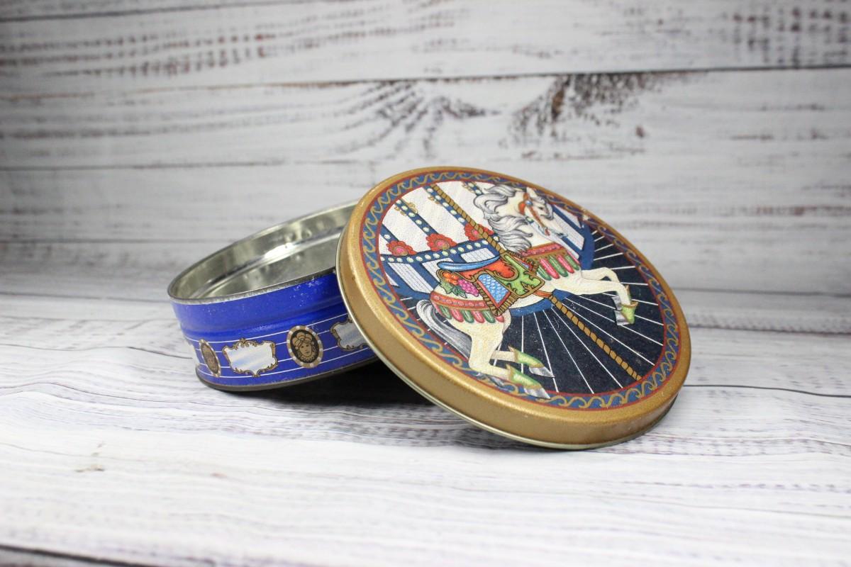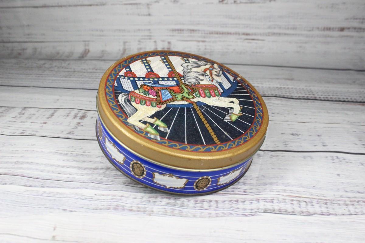 Round Metal Carouse Horse Cookie Tin