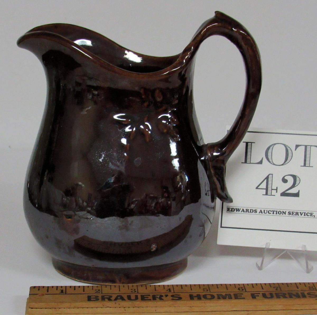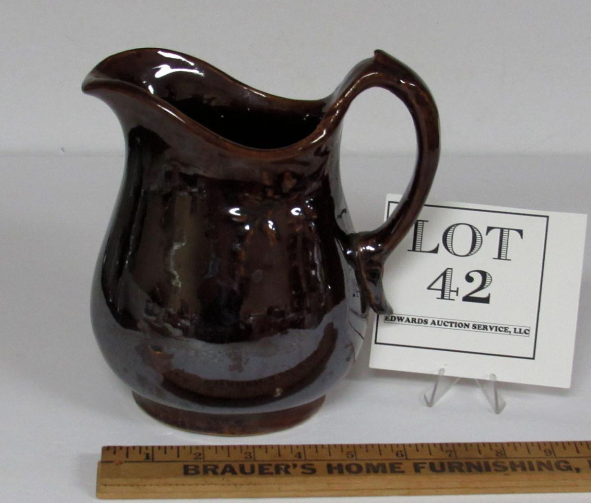 Vintage Brown Glazed Pottery Pitcher, Unmarked