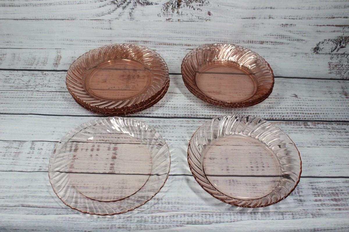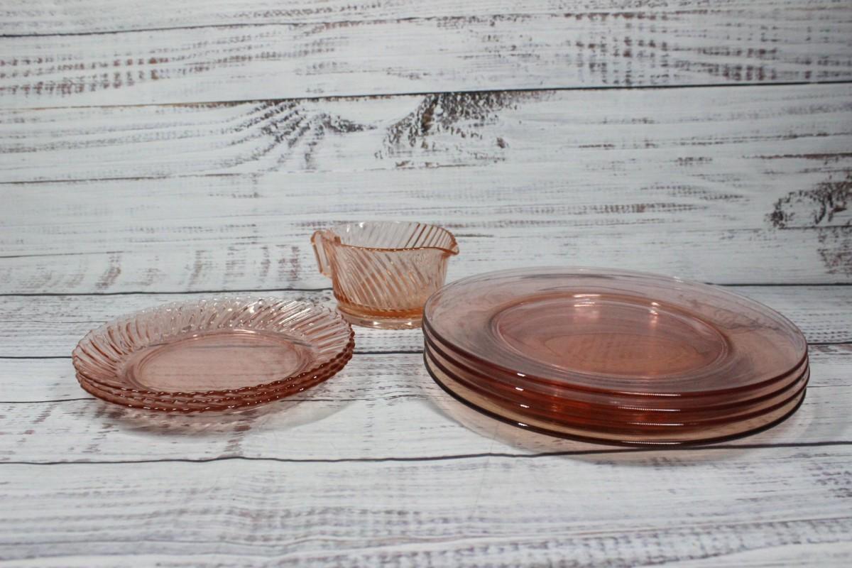 Vintage Fortecrisa Translucent Pink Swirl Depression Glass Dishware Set