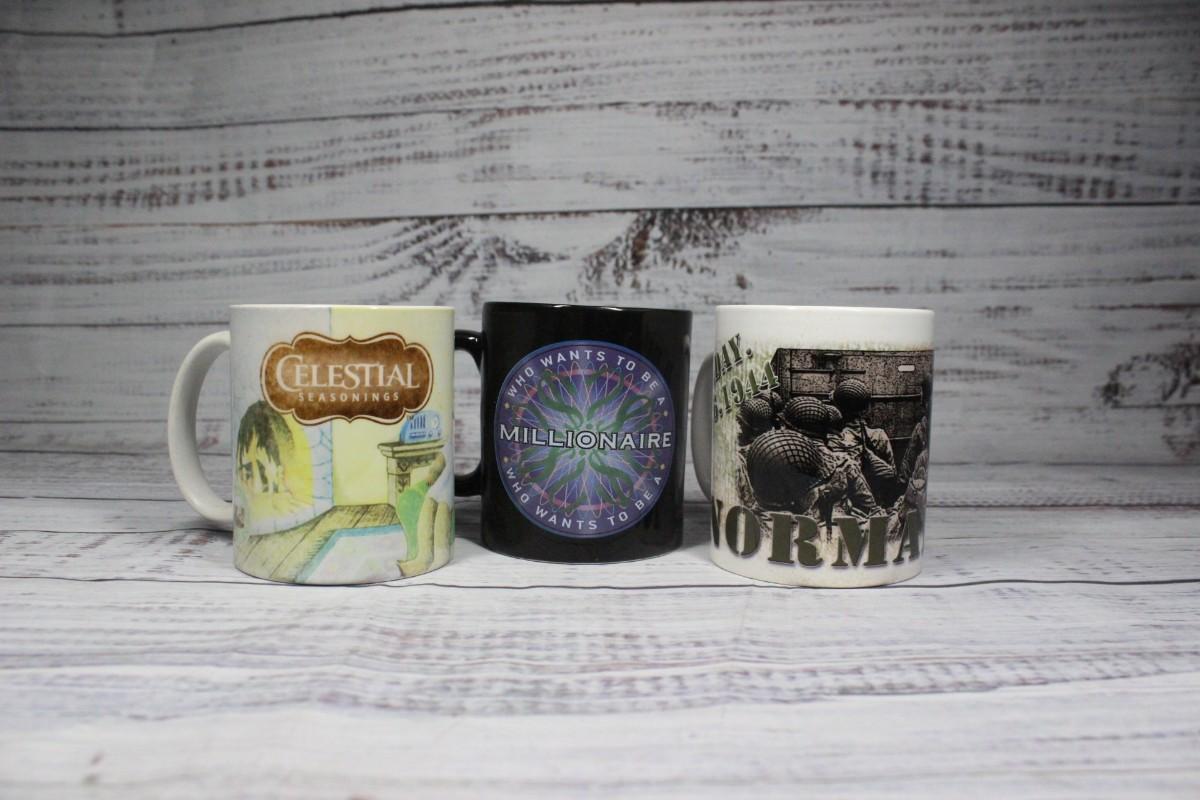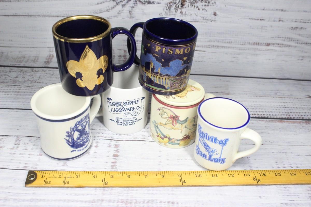 Lot of assorted retro mugs, varies little in sizes. There is no significant chipping or damage to the mugs.